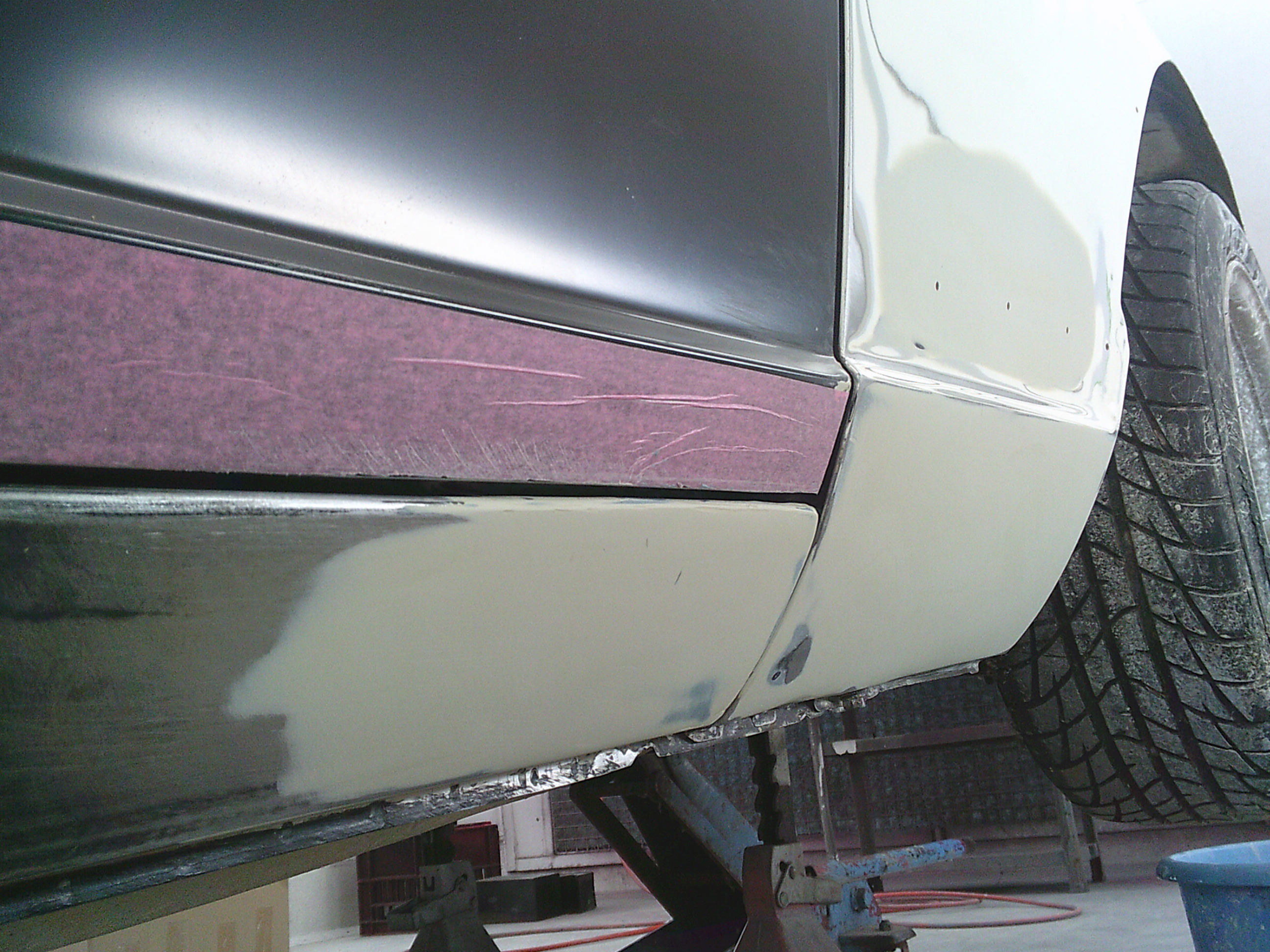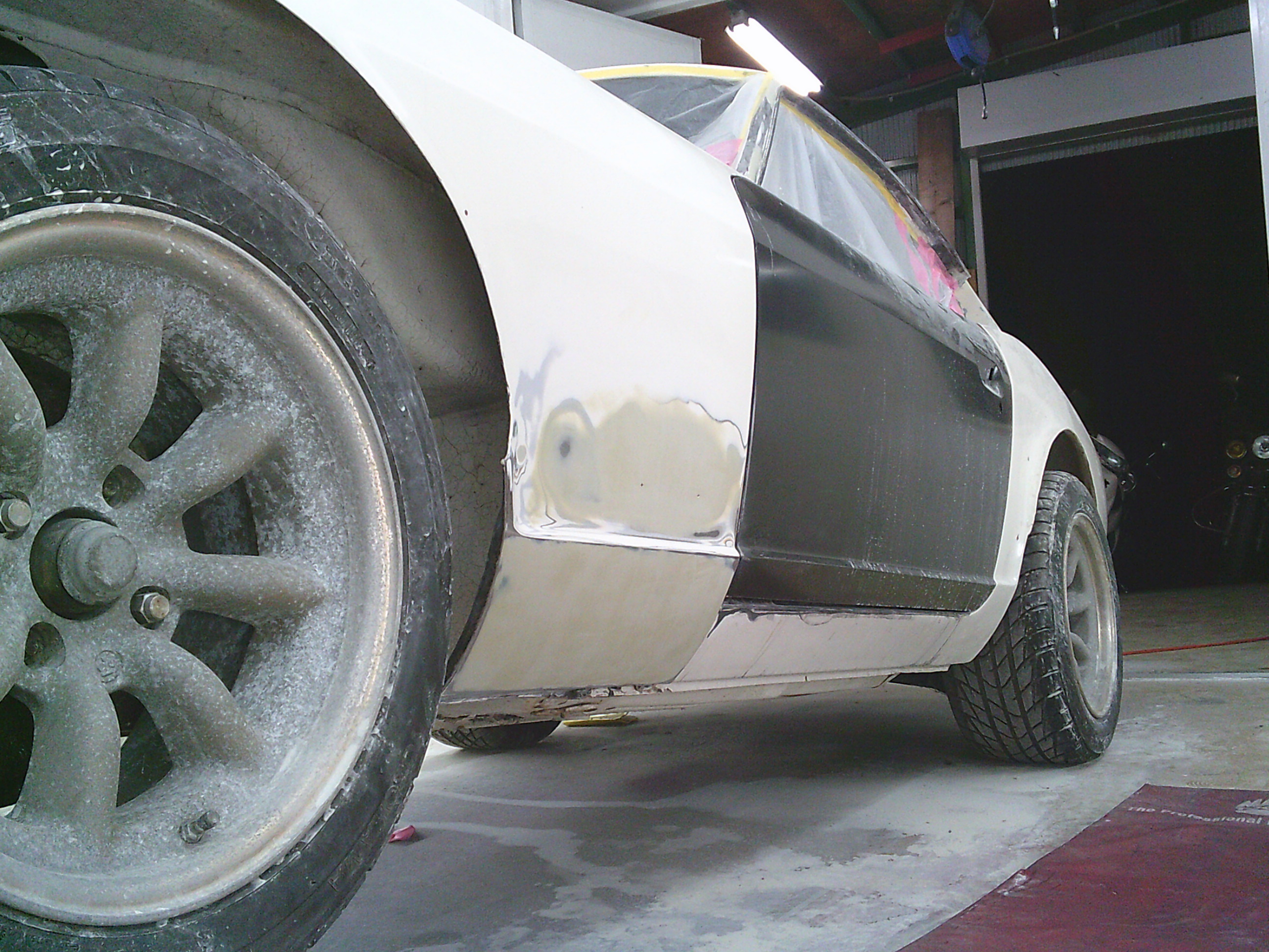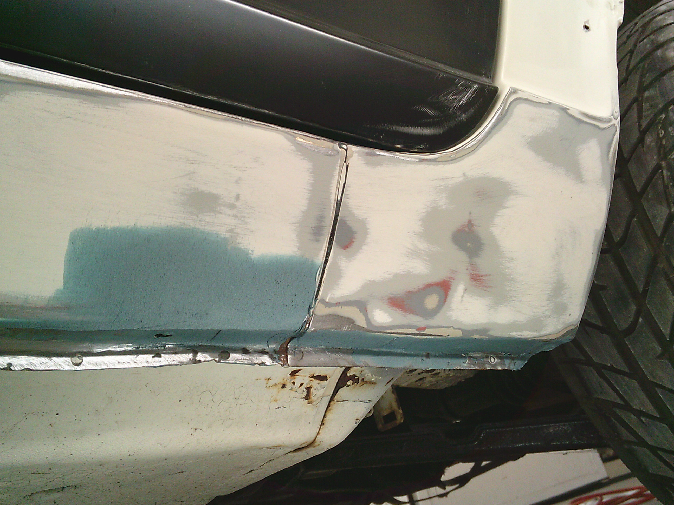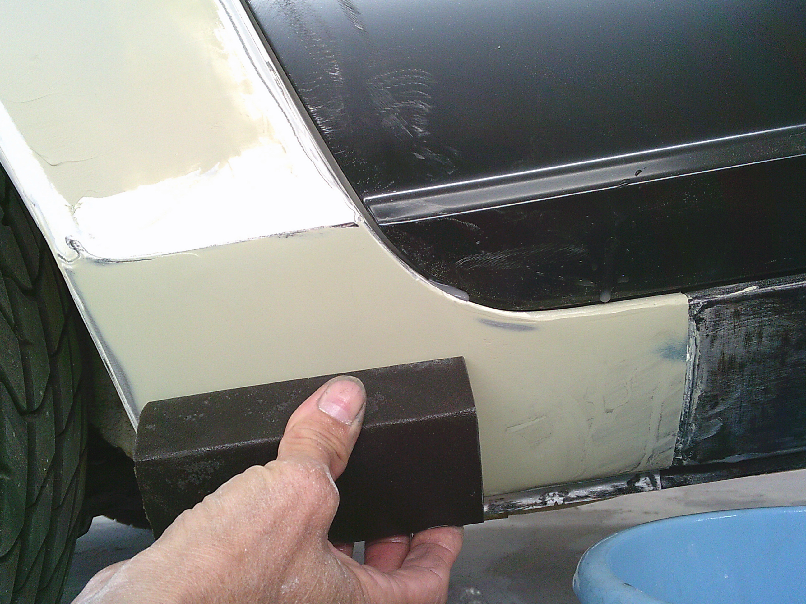 フロントフェンダー後部のパテを仕上げます。