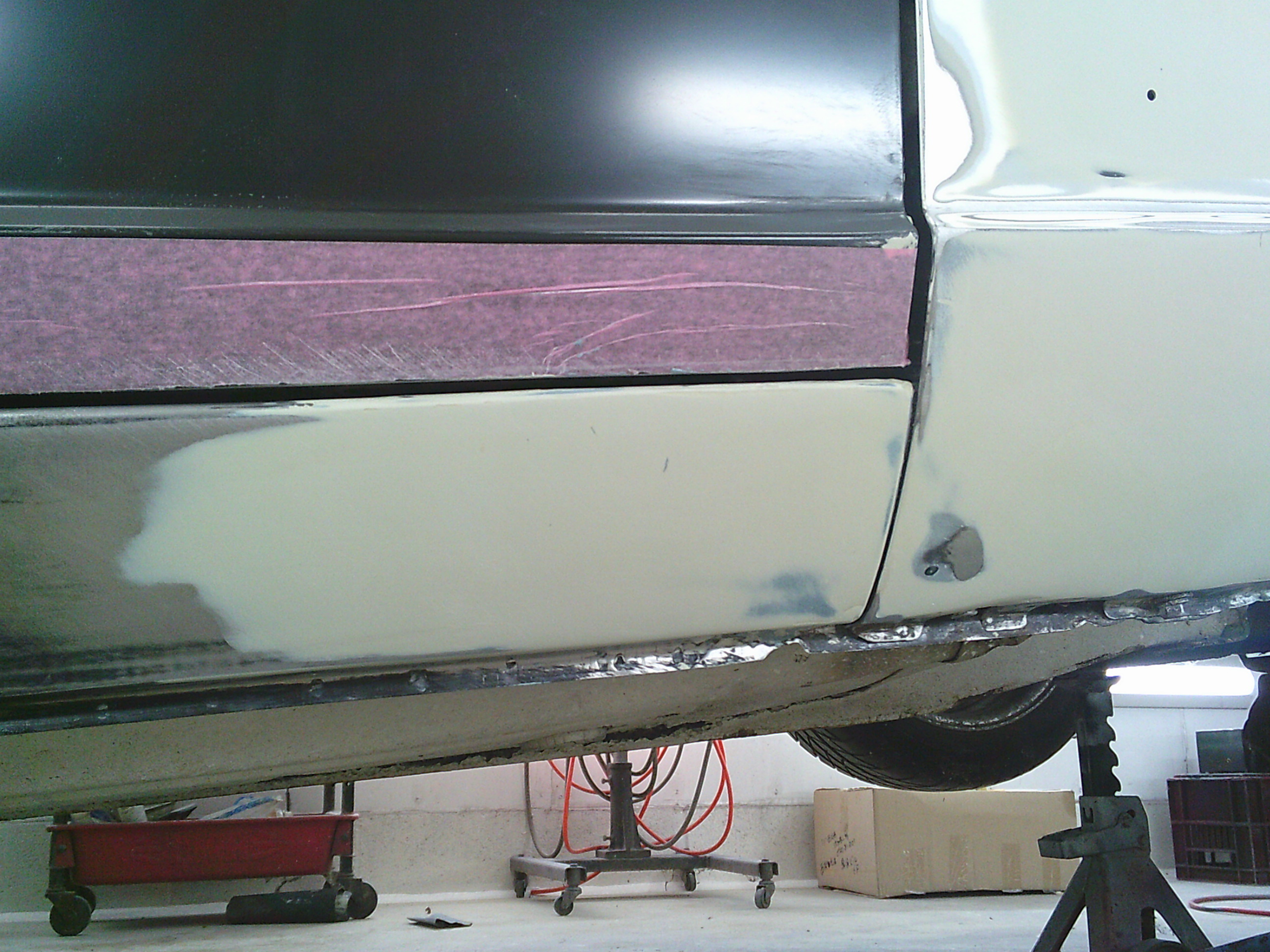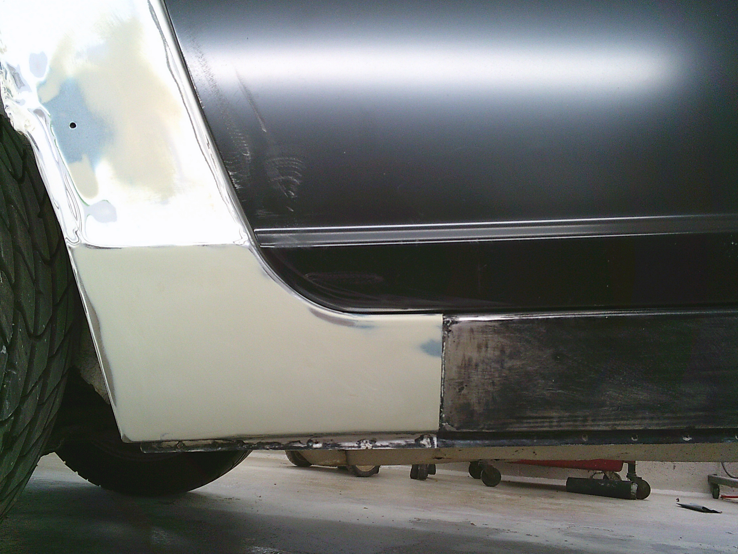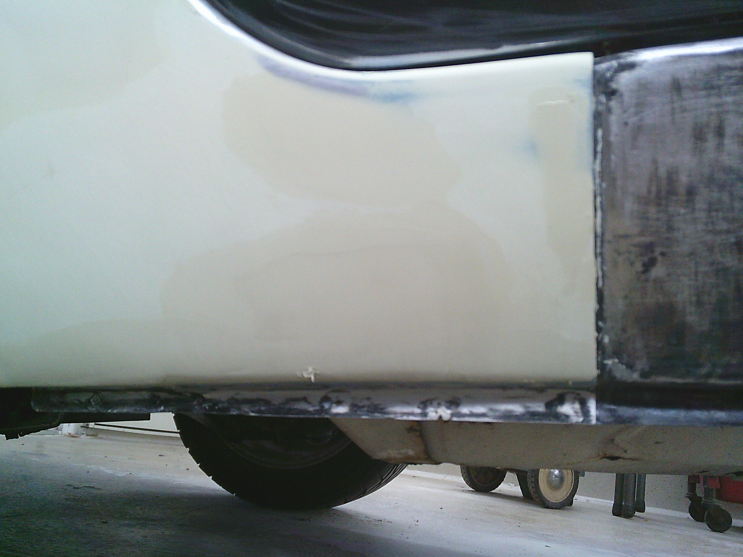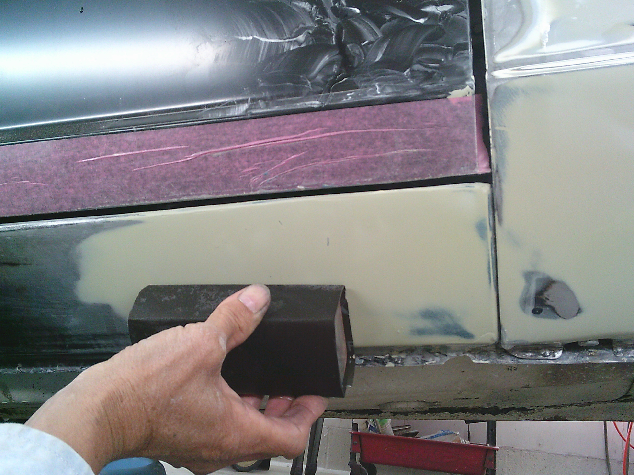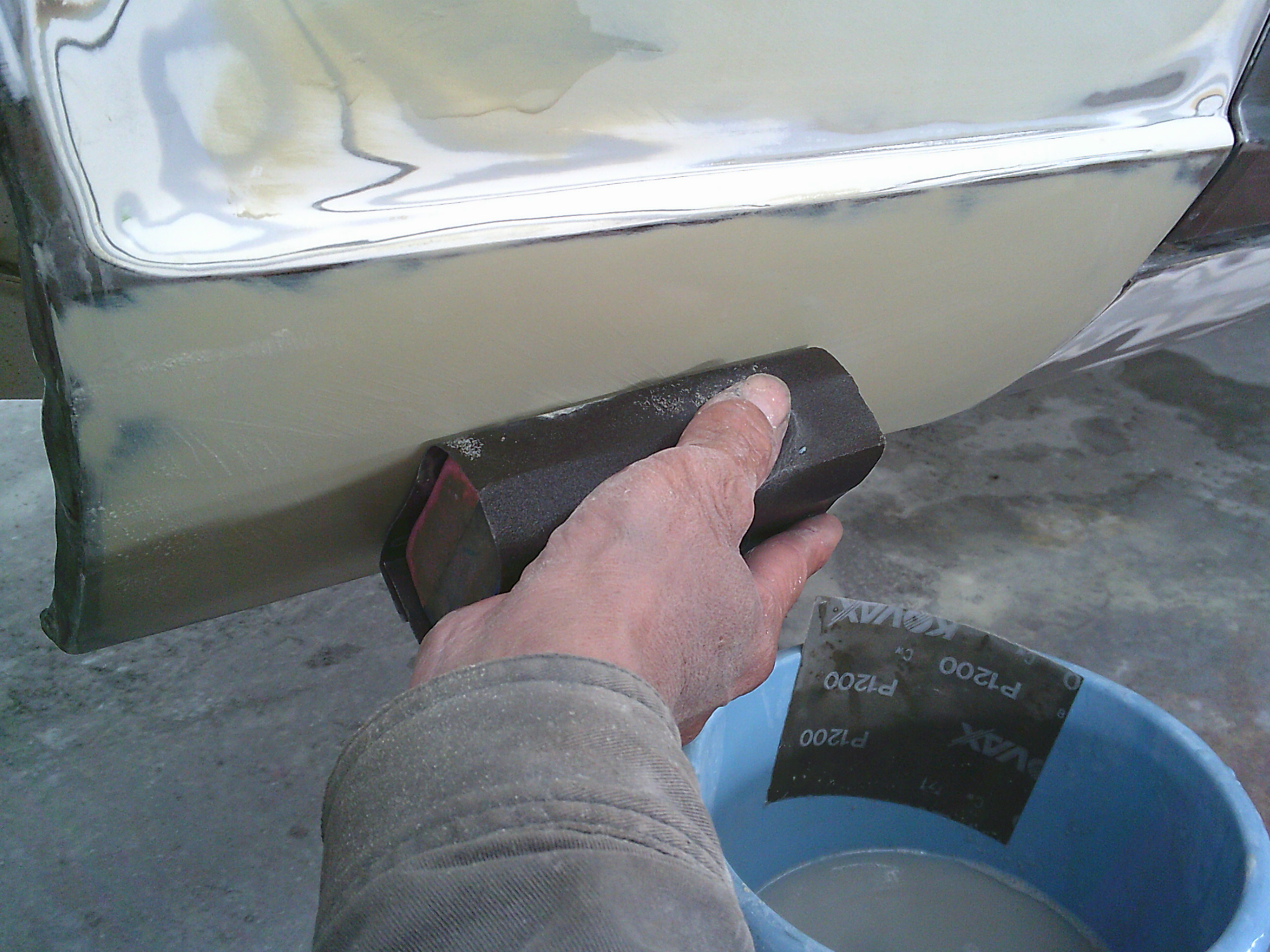 ステップ廻りのパテを研ぎます。