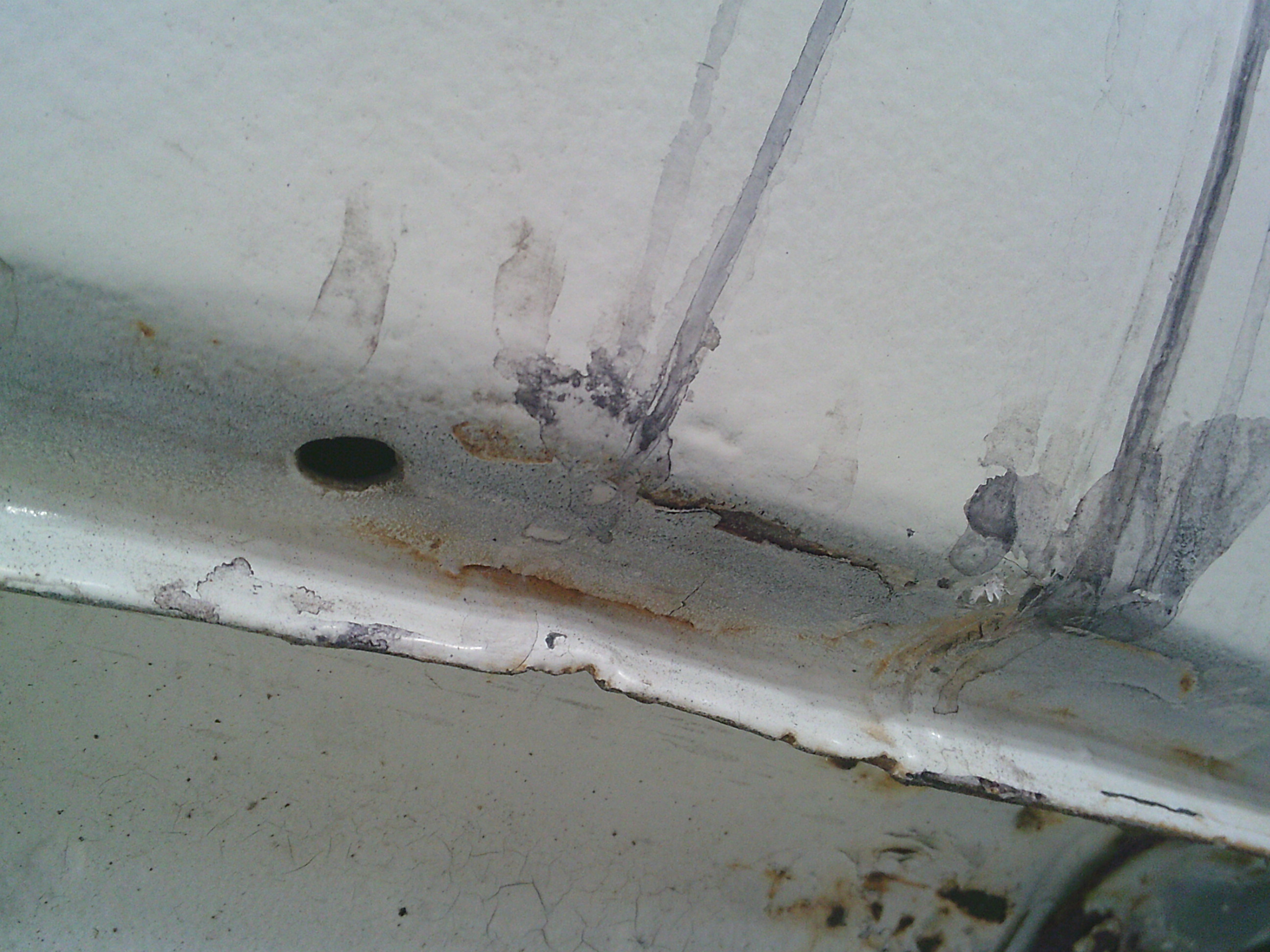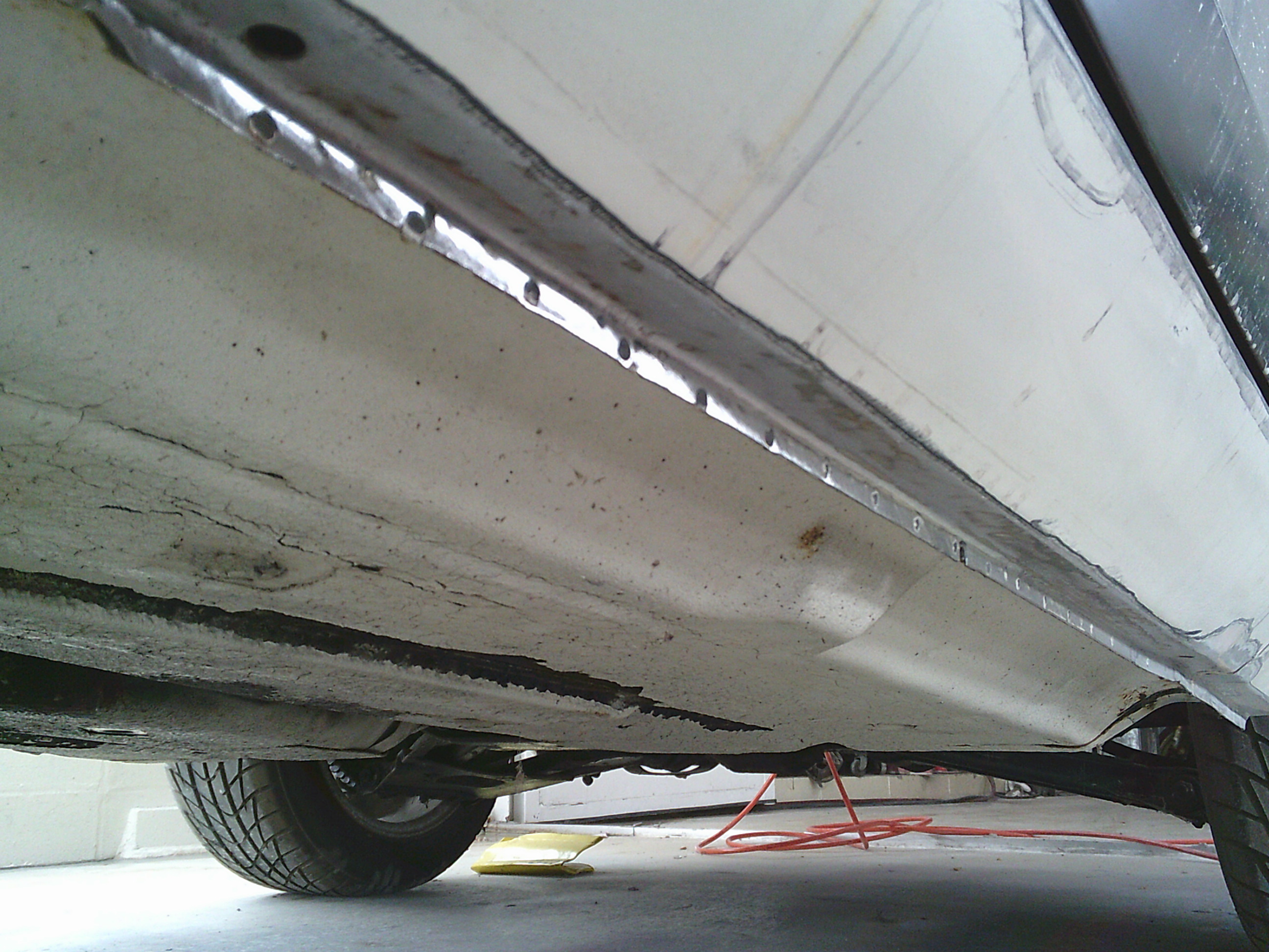 ステップ全体に塗られたブツブツのチッピングコートを