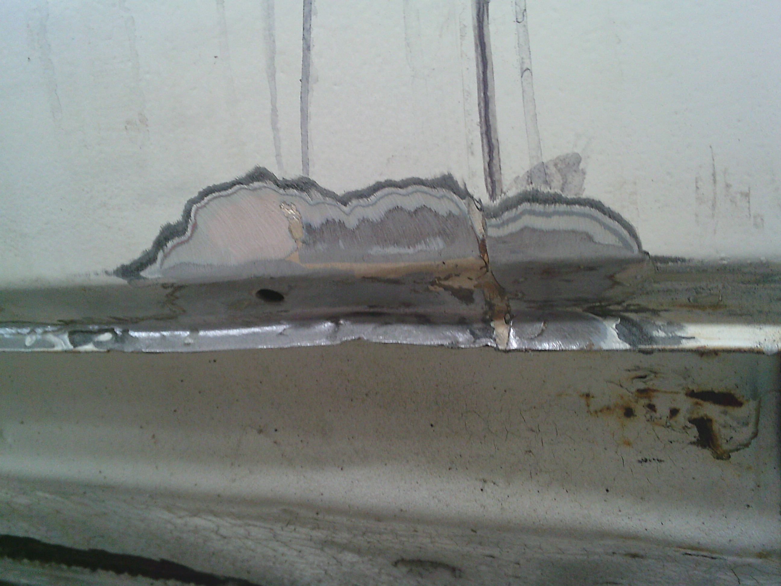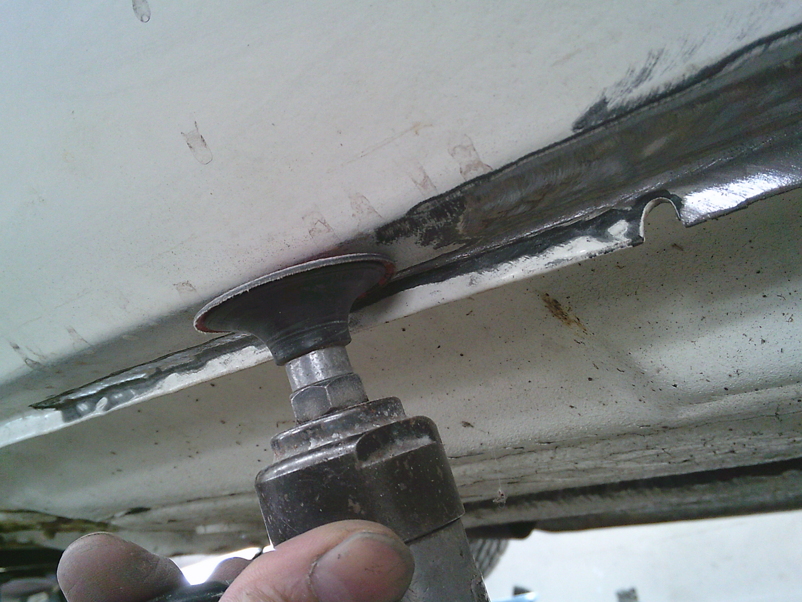 パテを剥がした個所にアルミパテを塗ります。