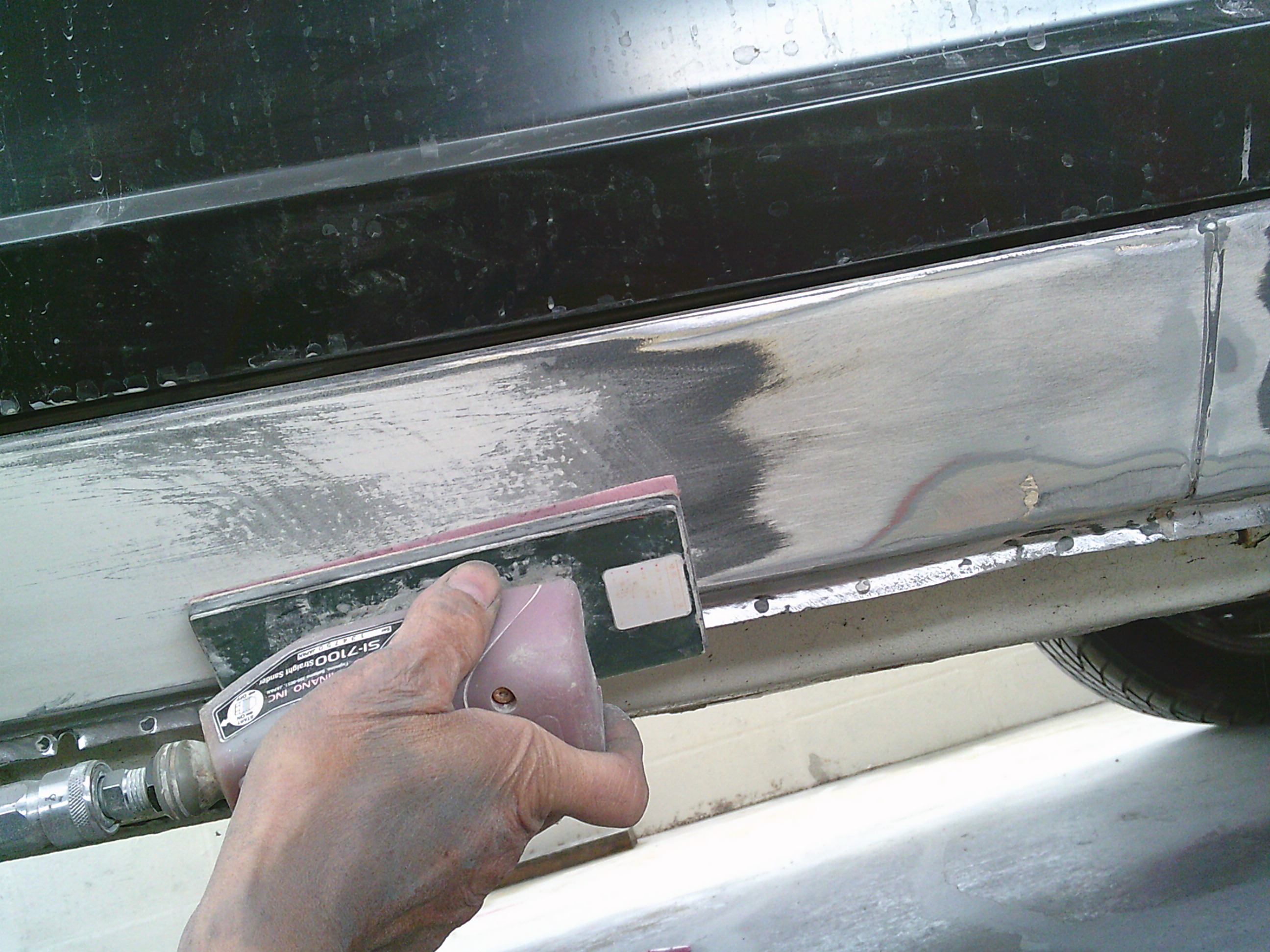 横面はストレートサンダーで面出しをしながら研磨します。
