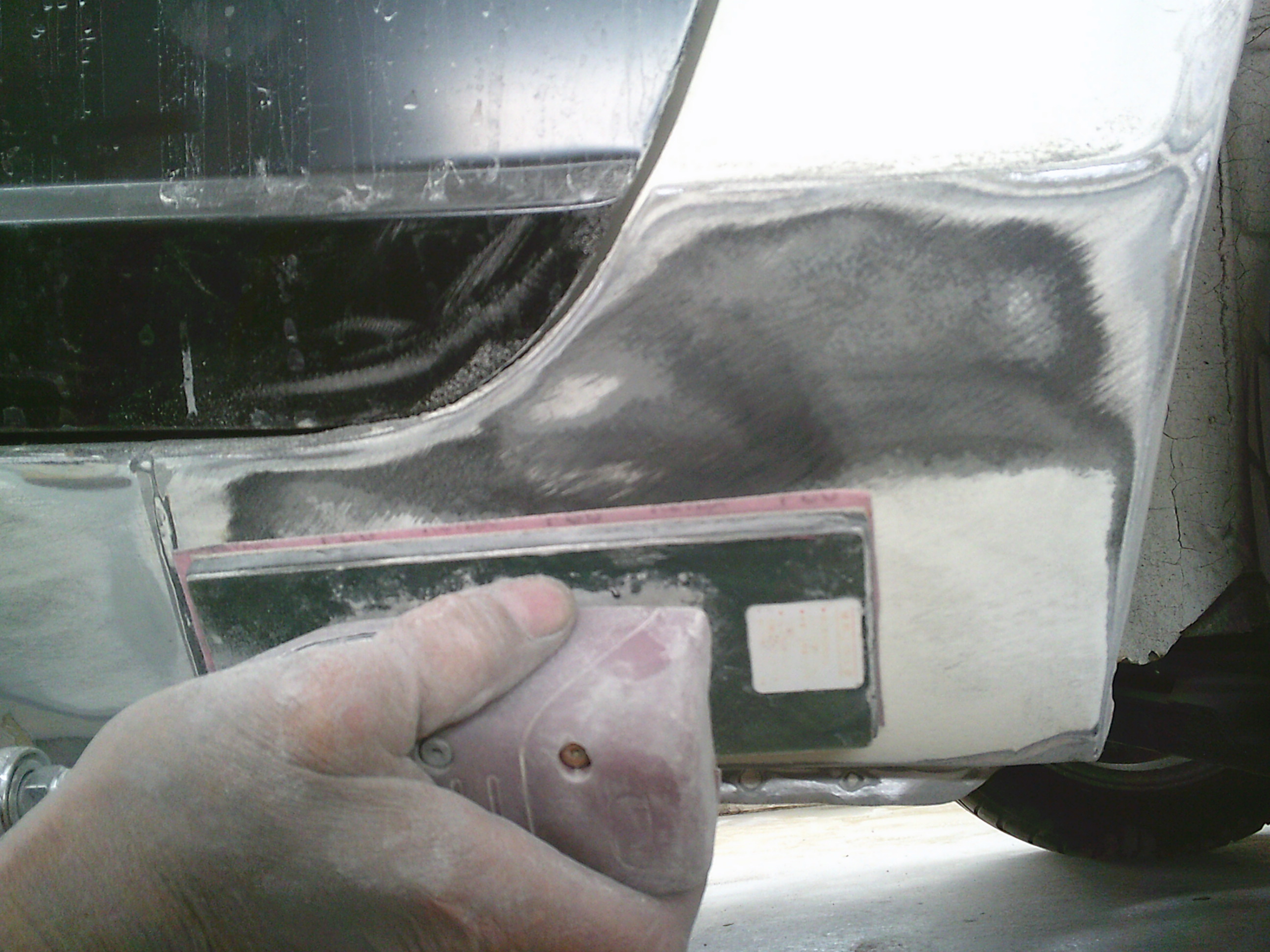 パテのひび割れ部分を研磨します。