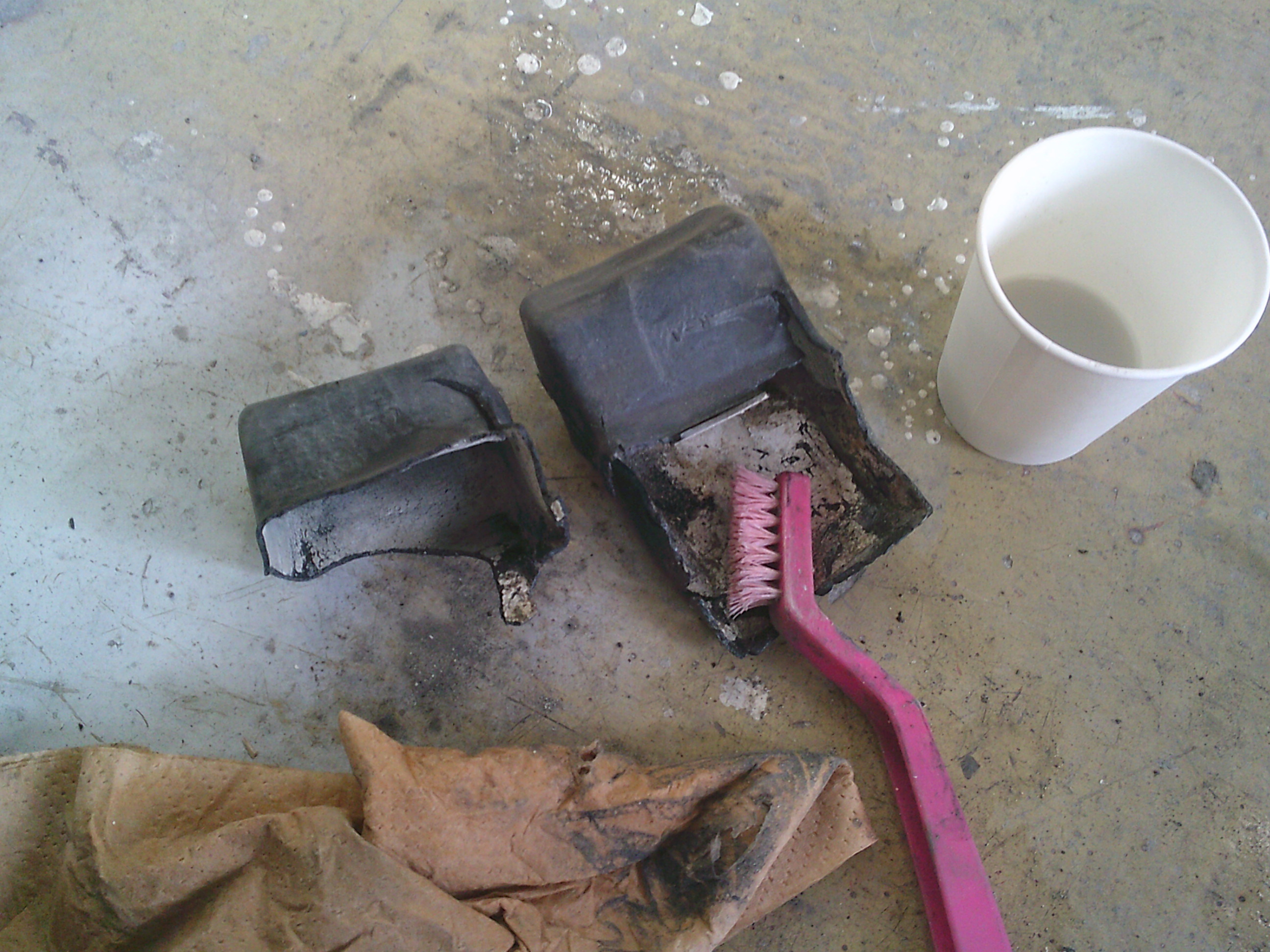 朽ちた防水カバーをシンナーで洗浄します。