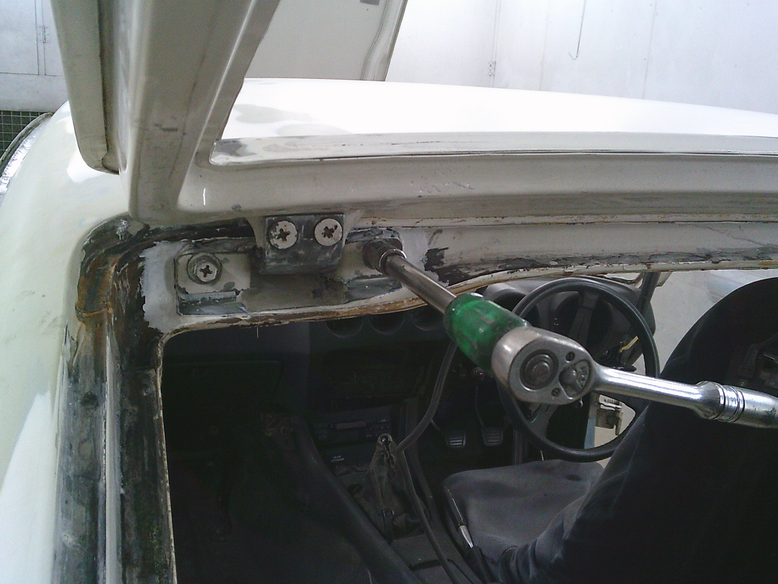リアゲートのヒンジを外して・・・