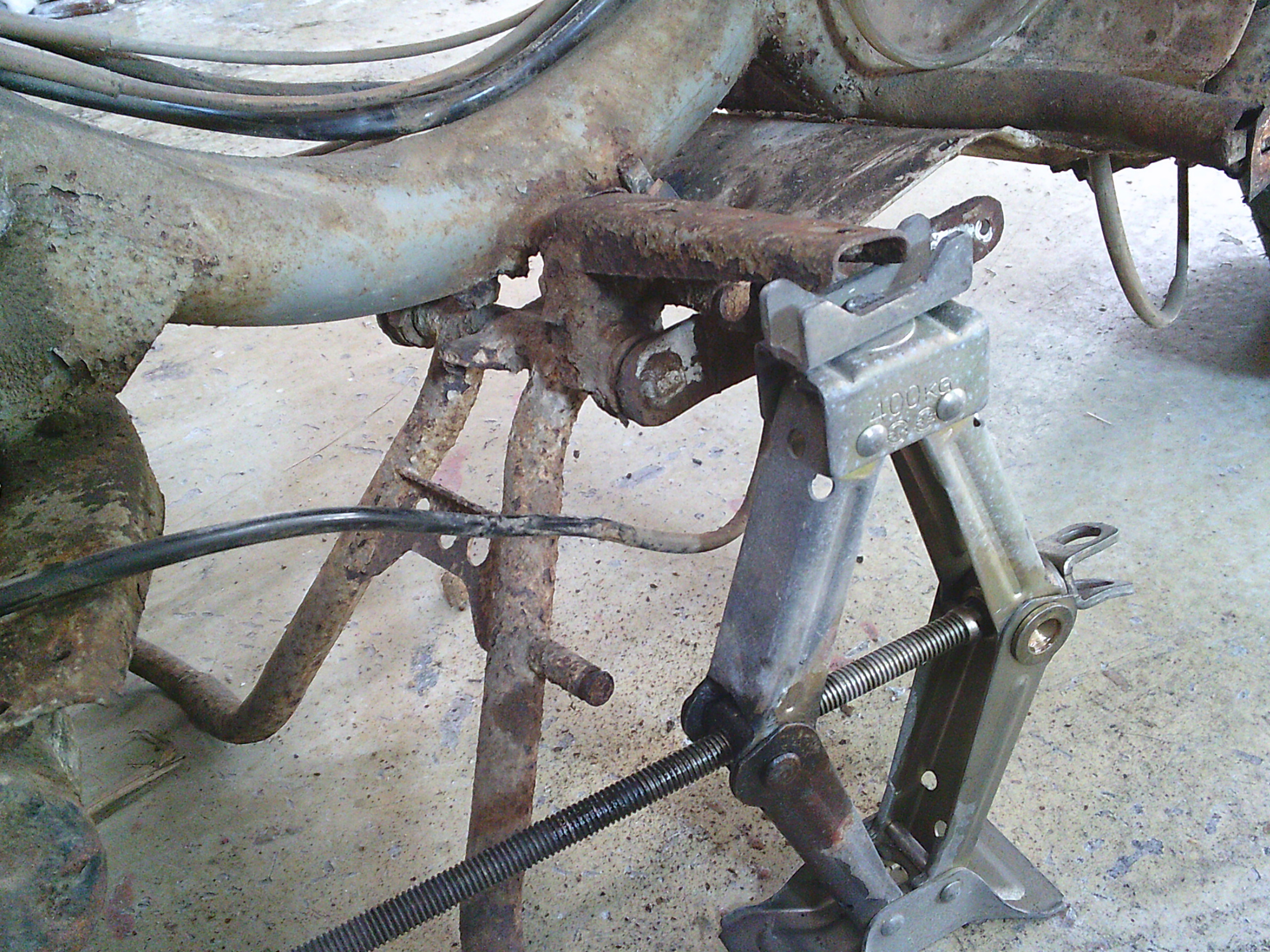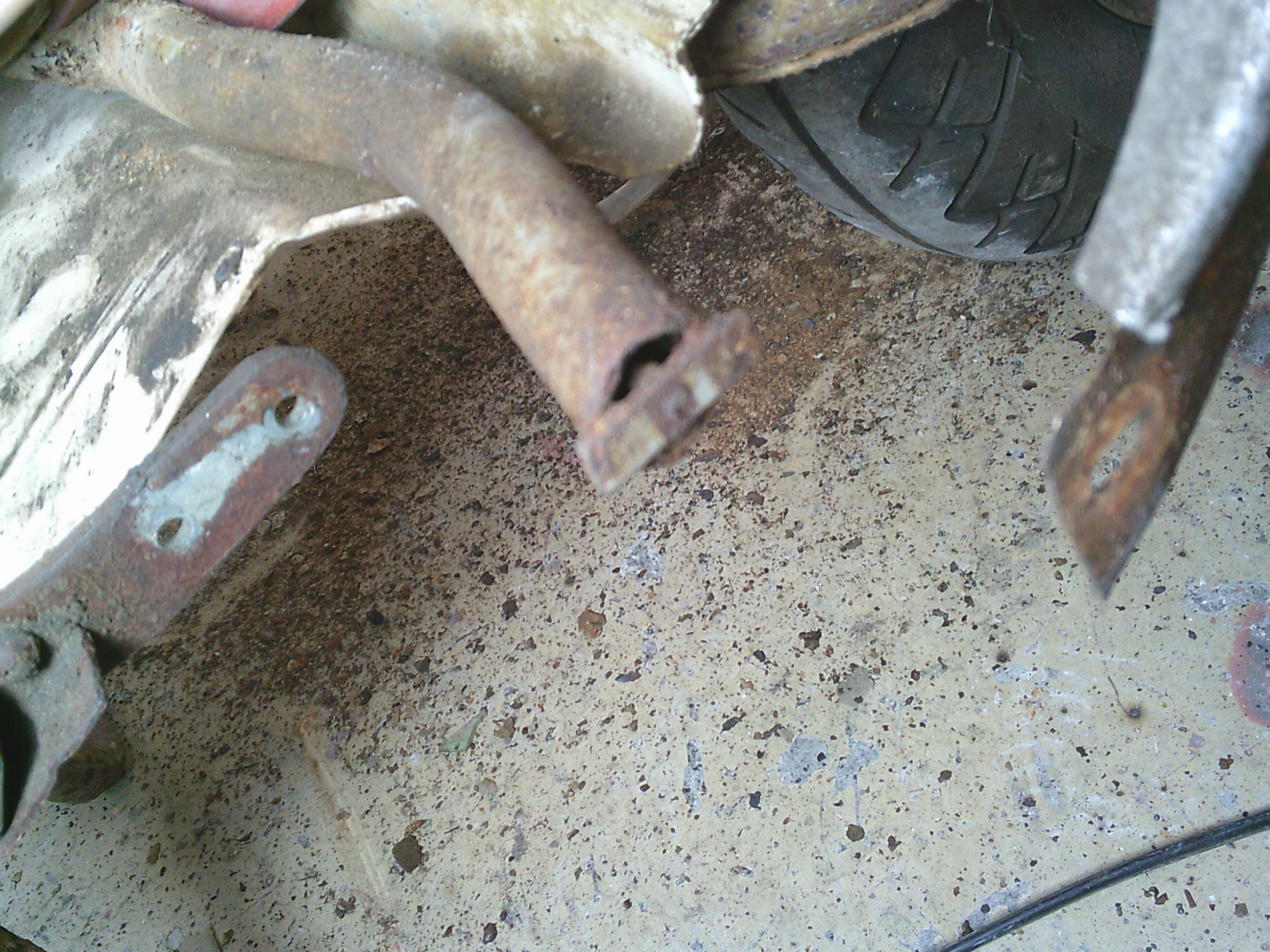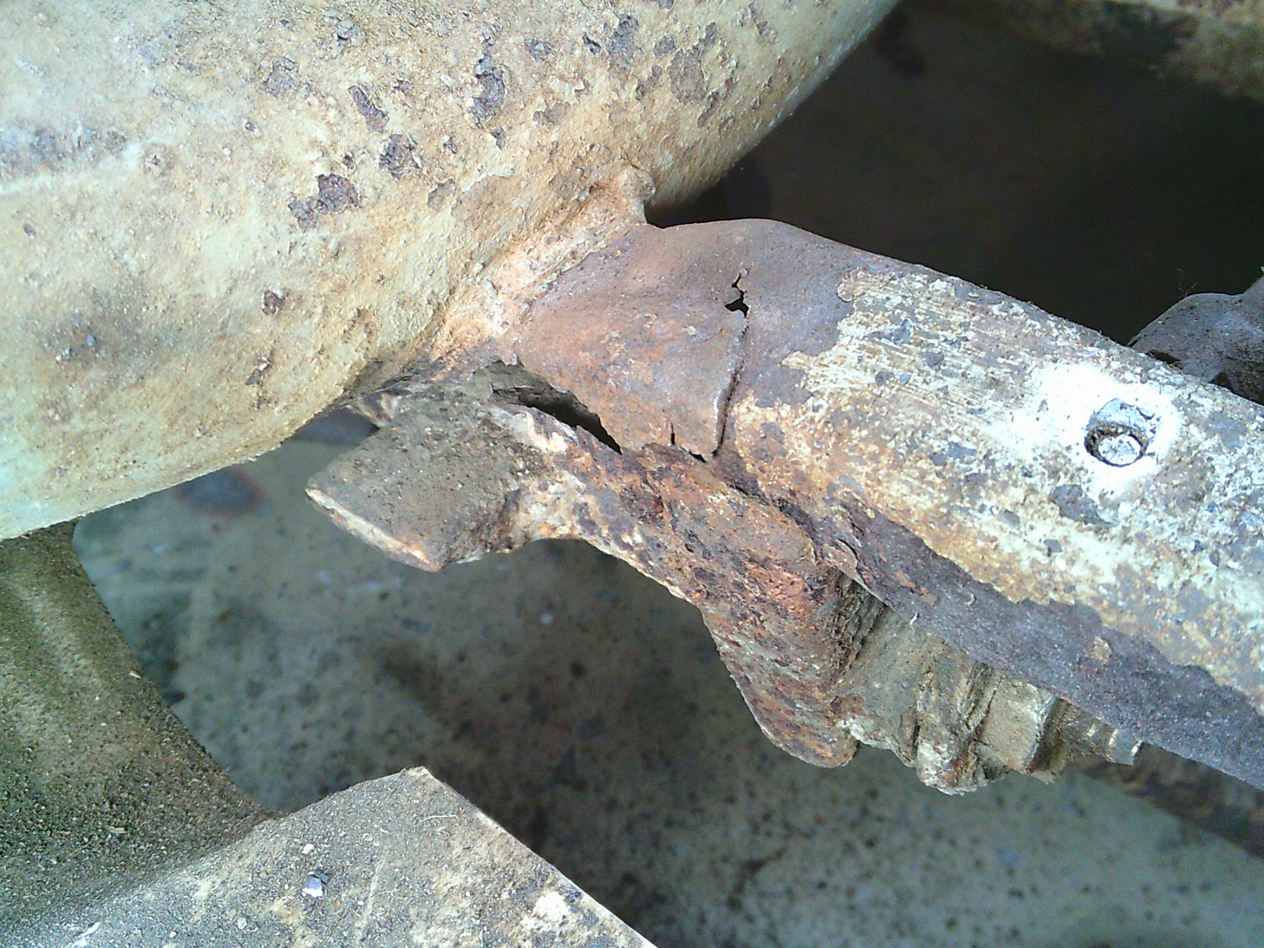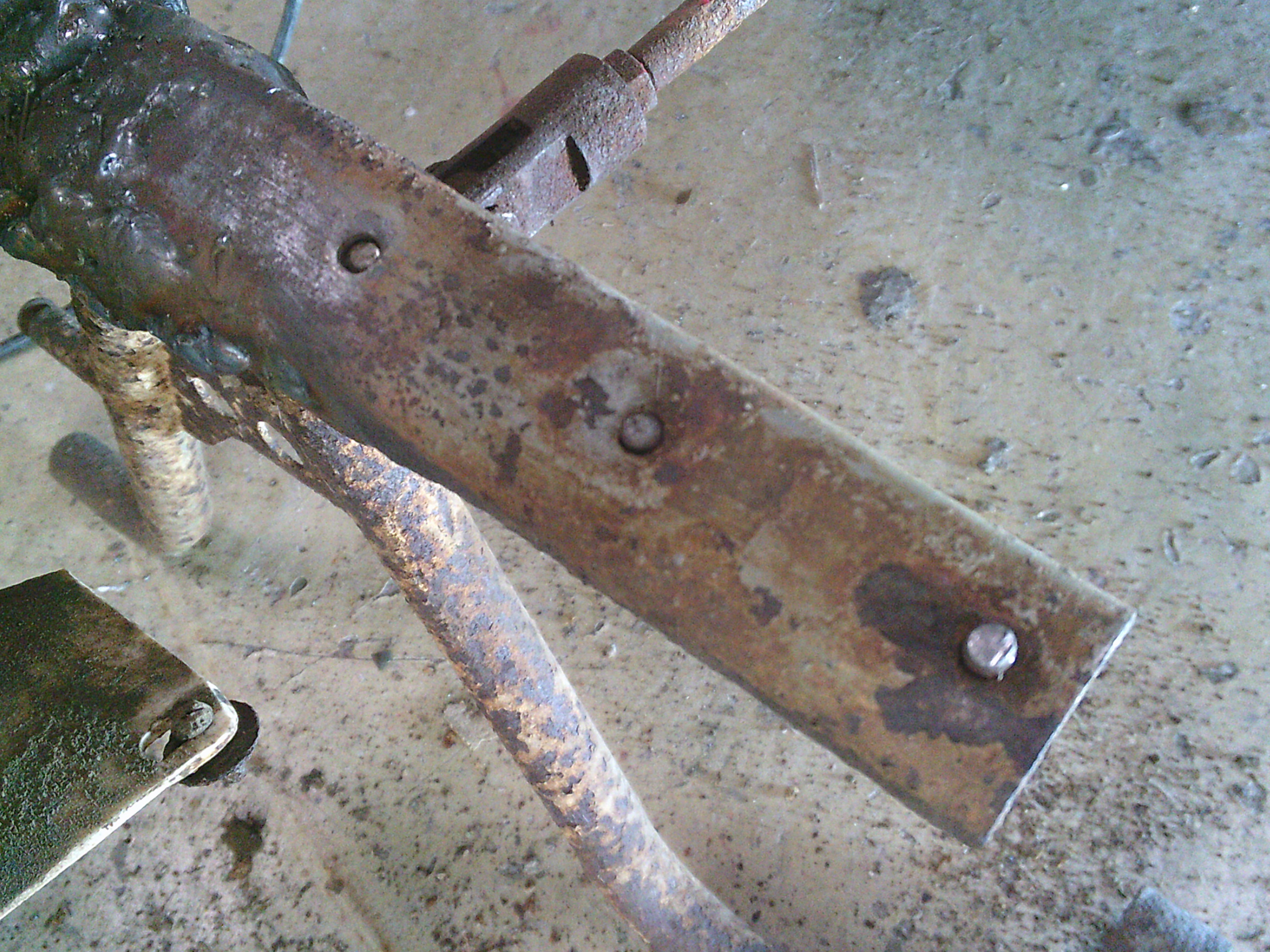 腐食してはずれているステップボードとスタンドの