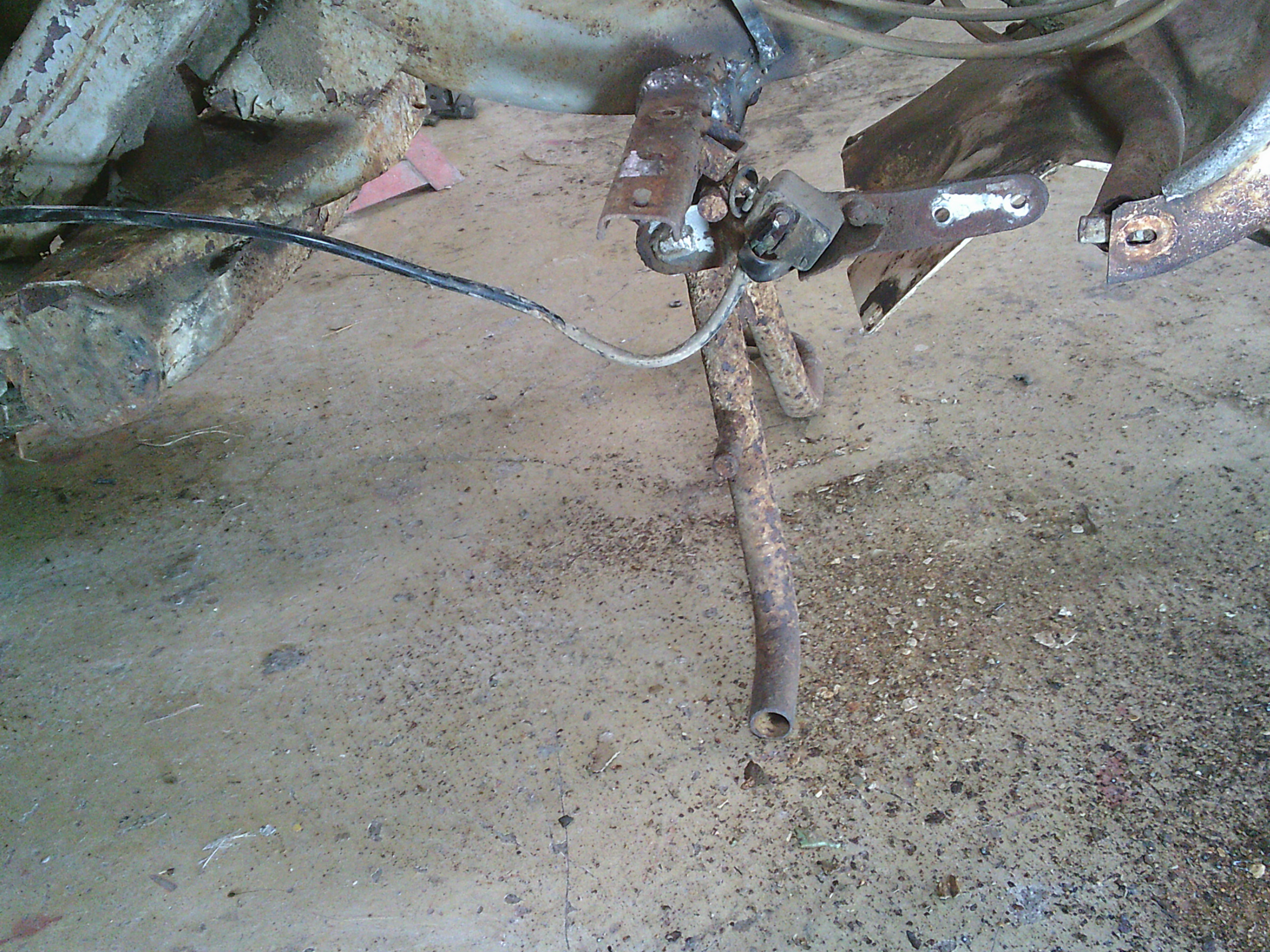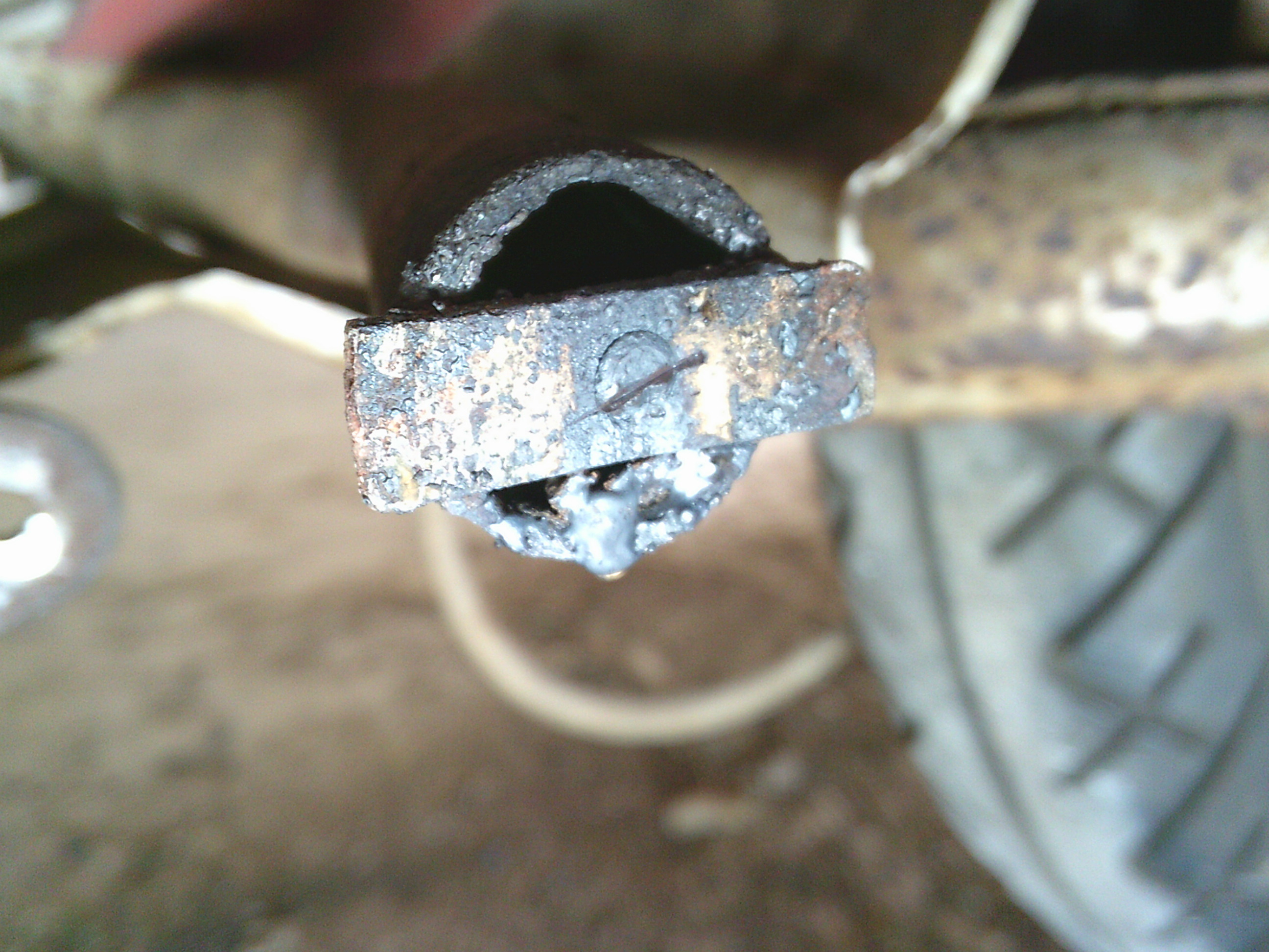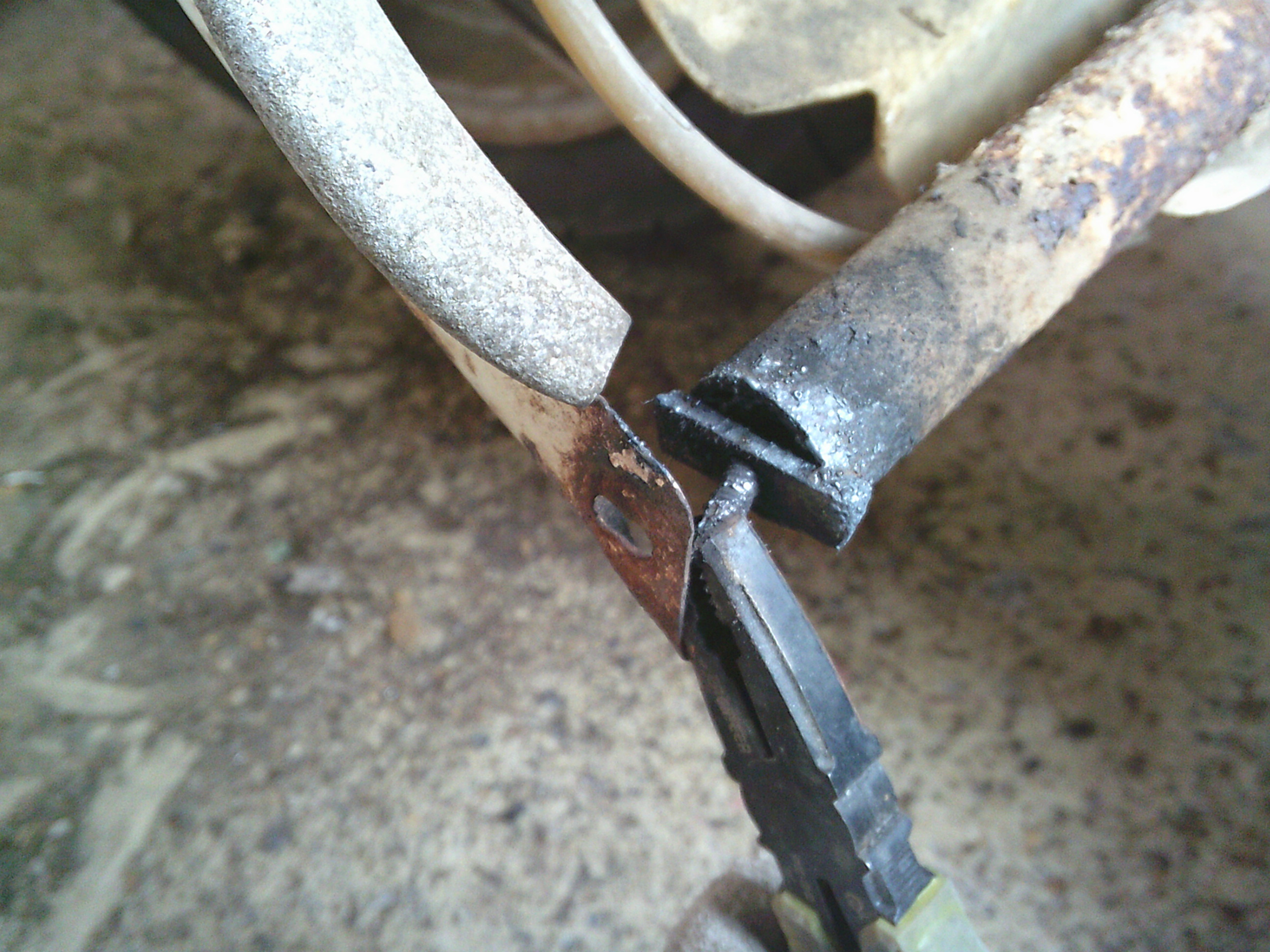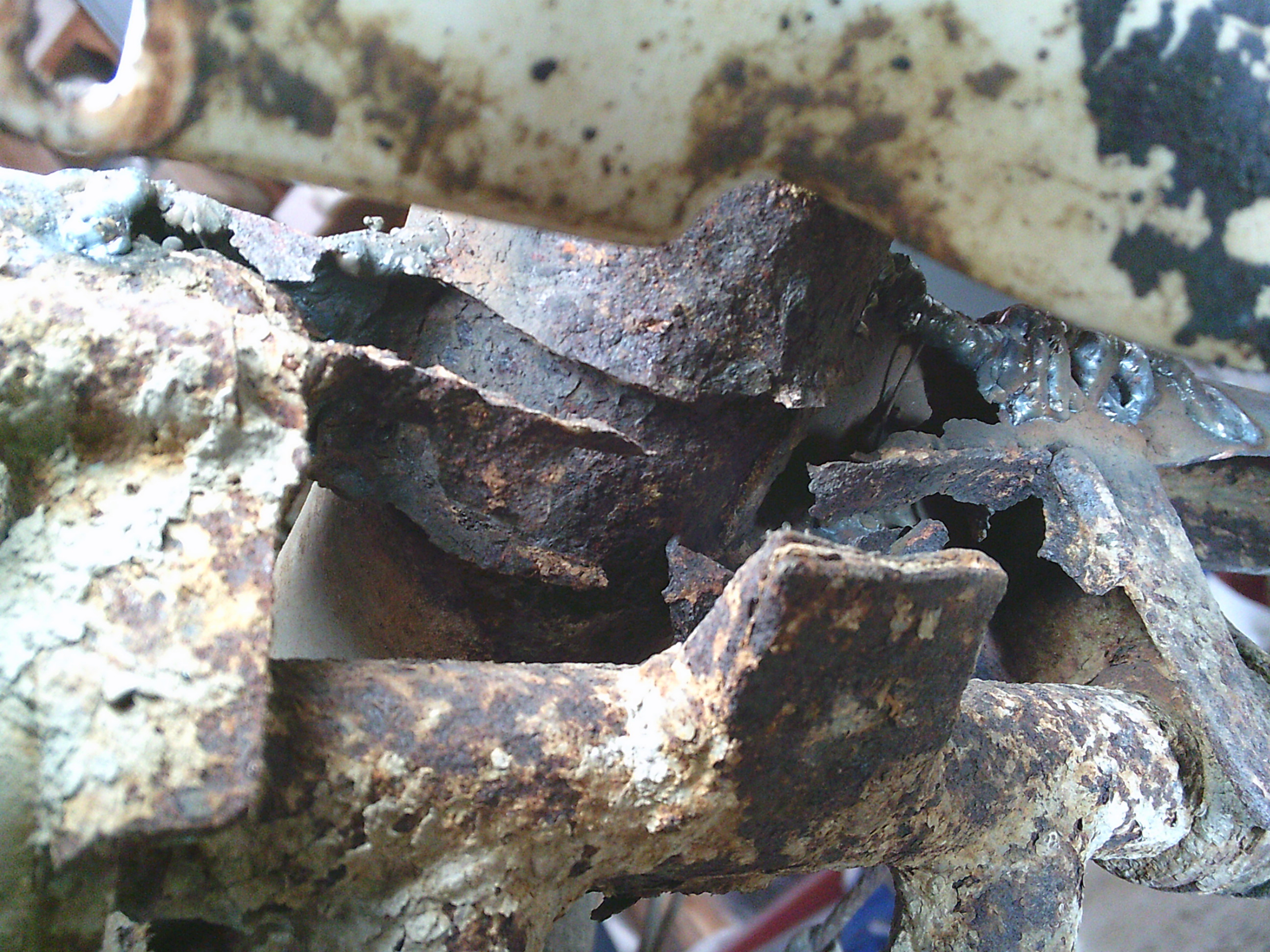 腐食してはずれているステップボードとスタンドの