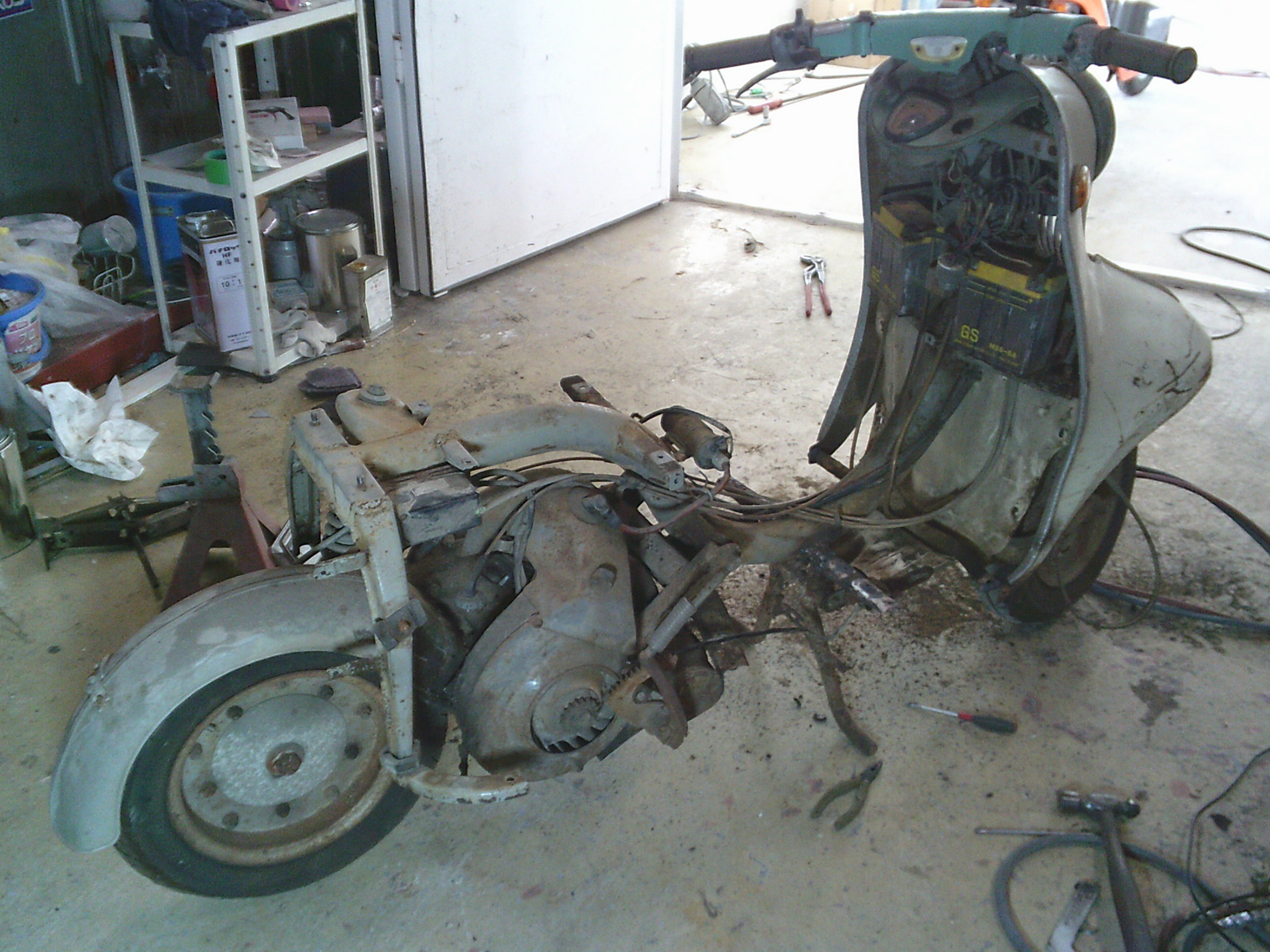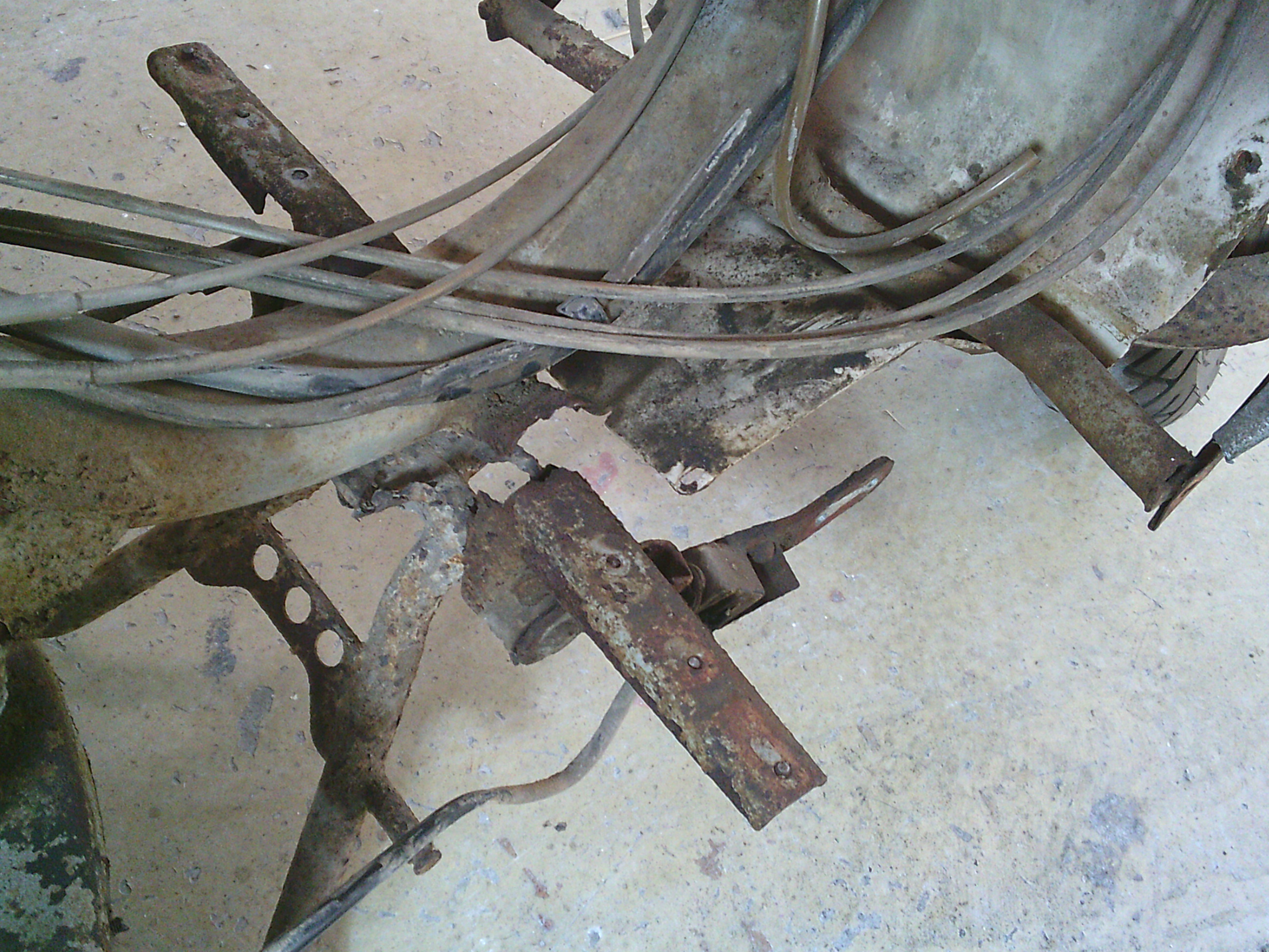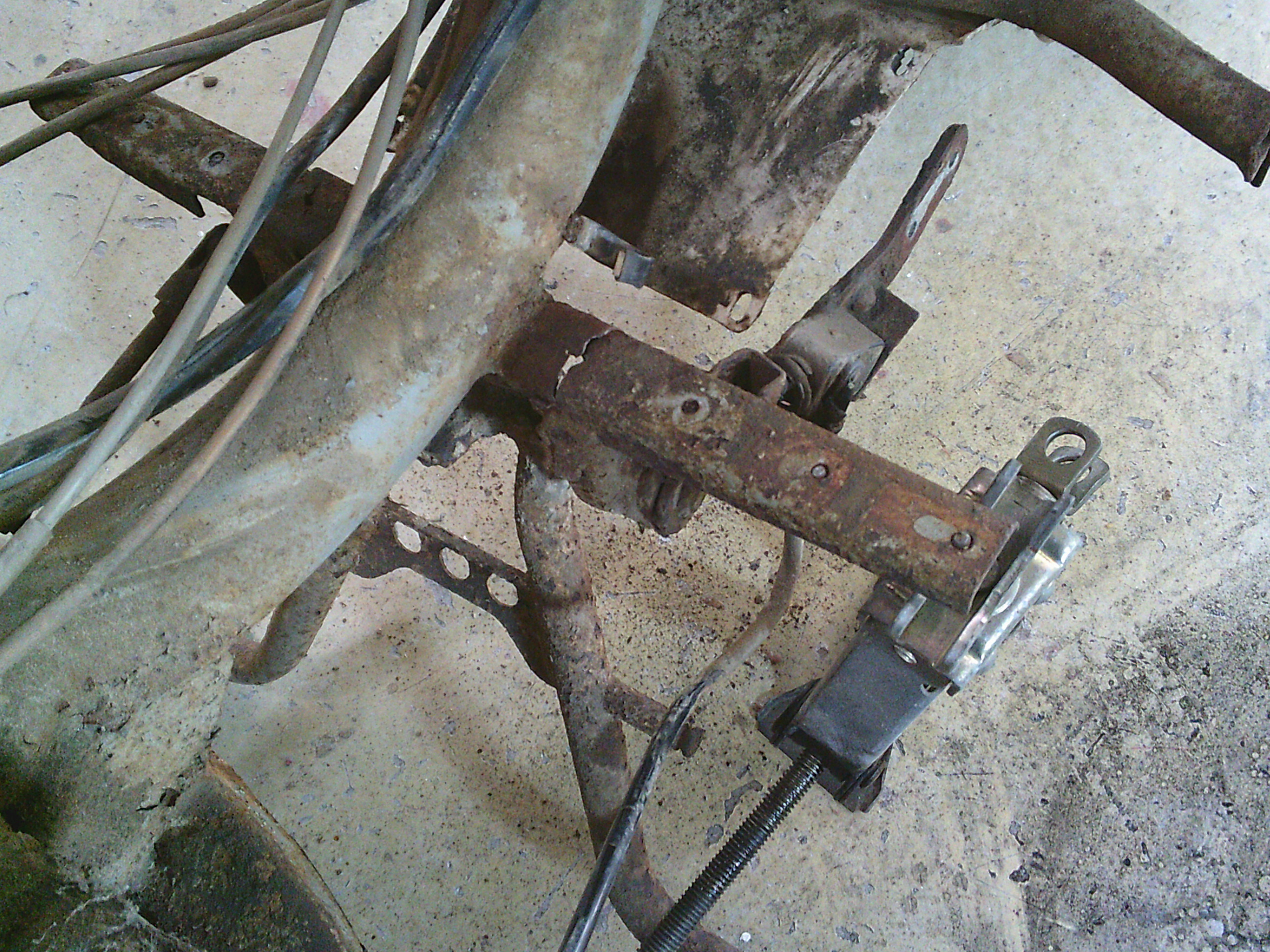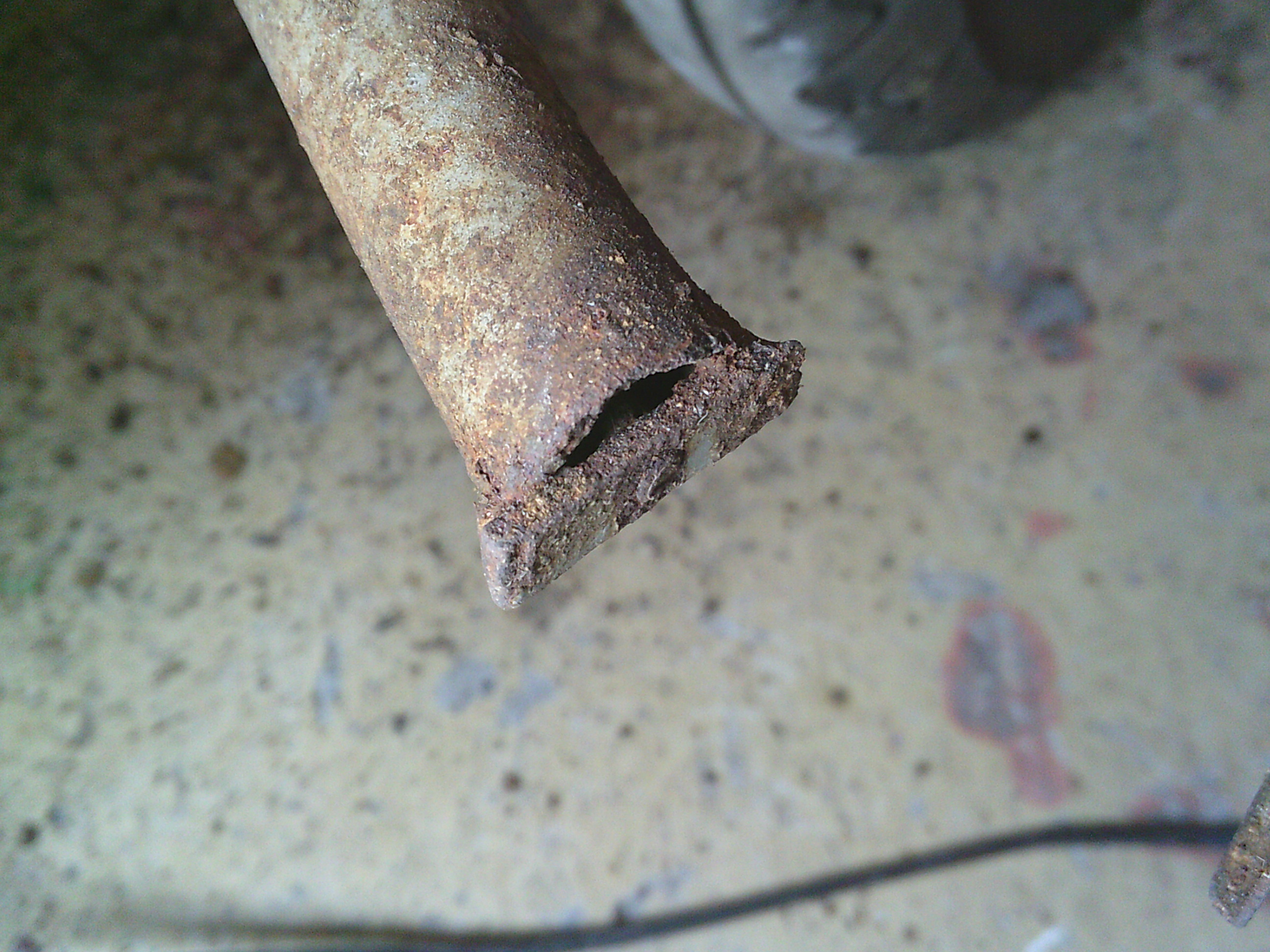 腐食してはずれているステップボードとスタンドの