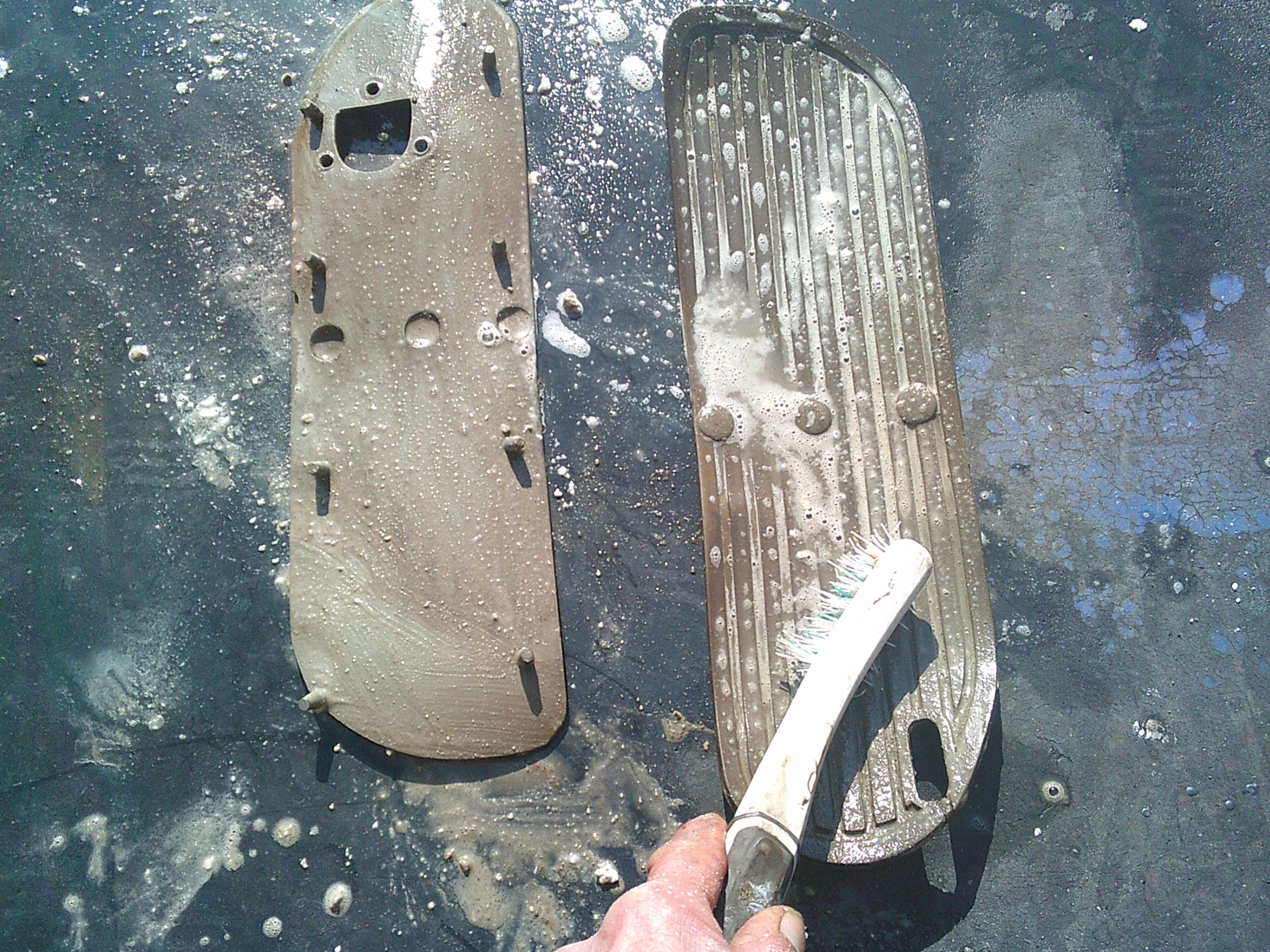 ステップのマットを洗います。