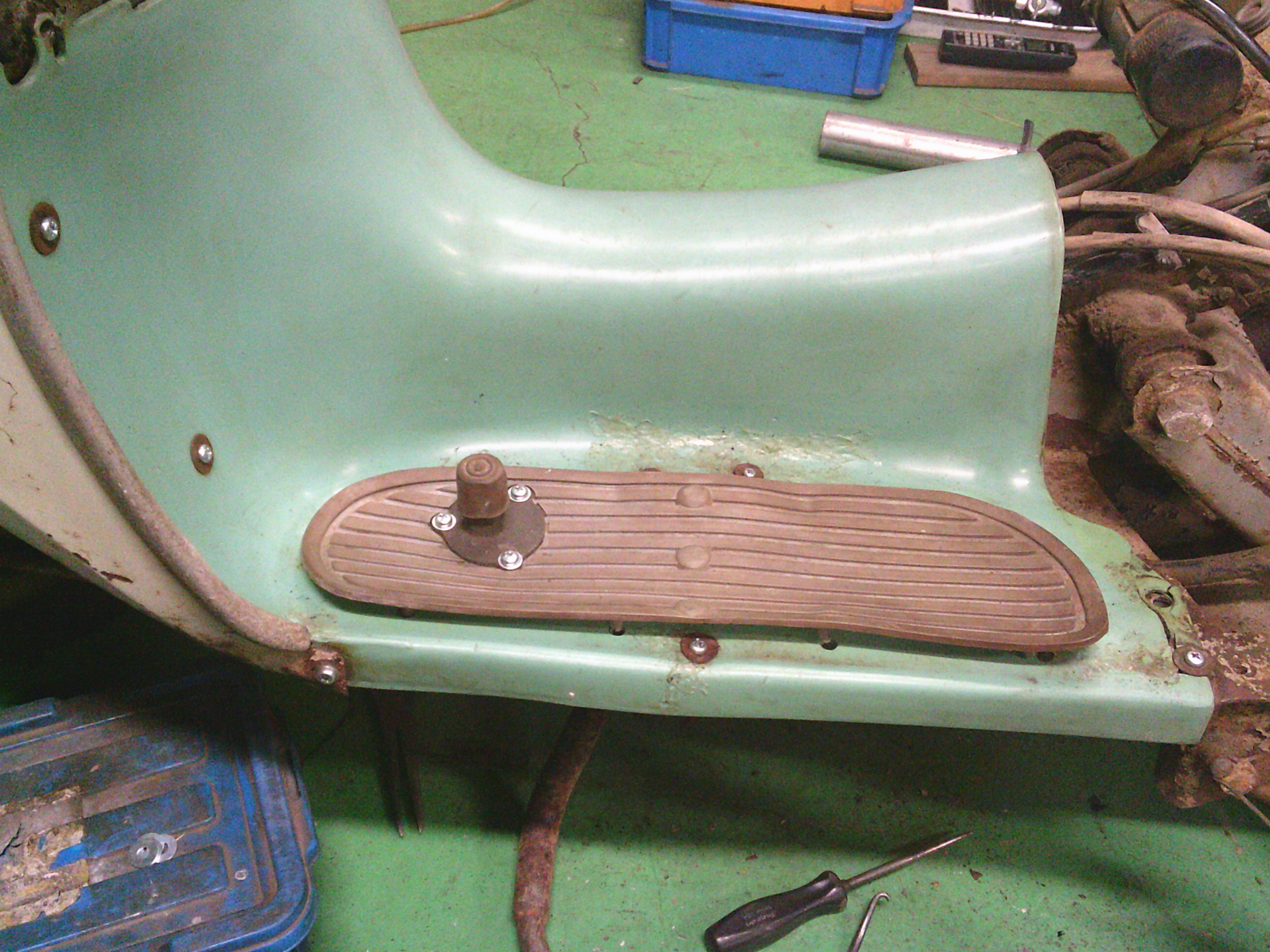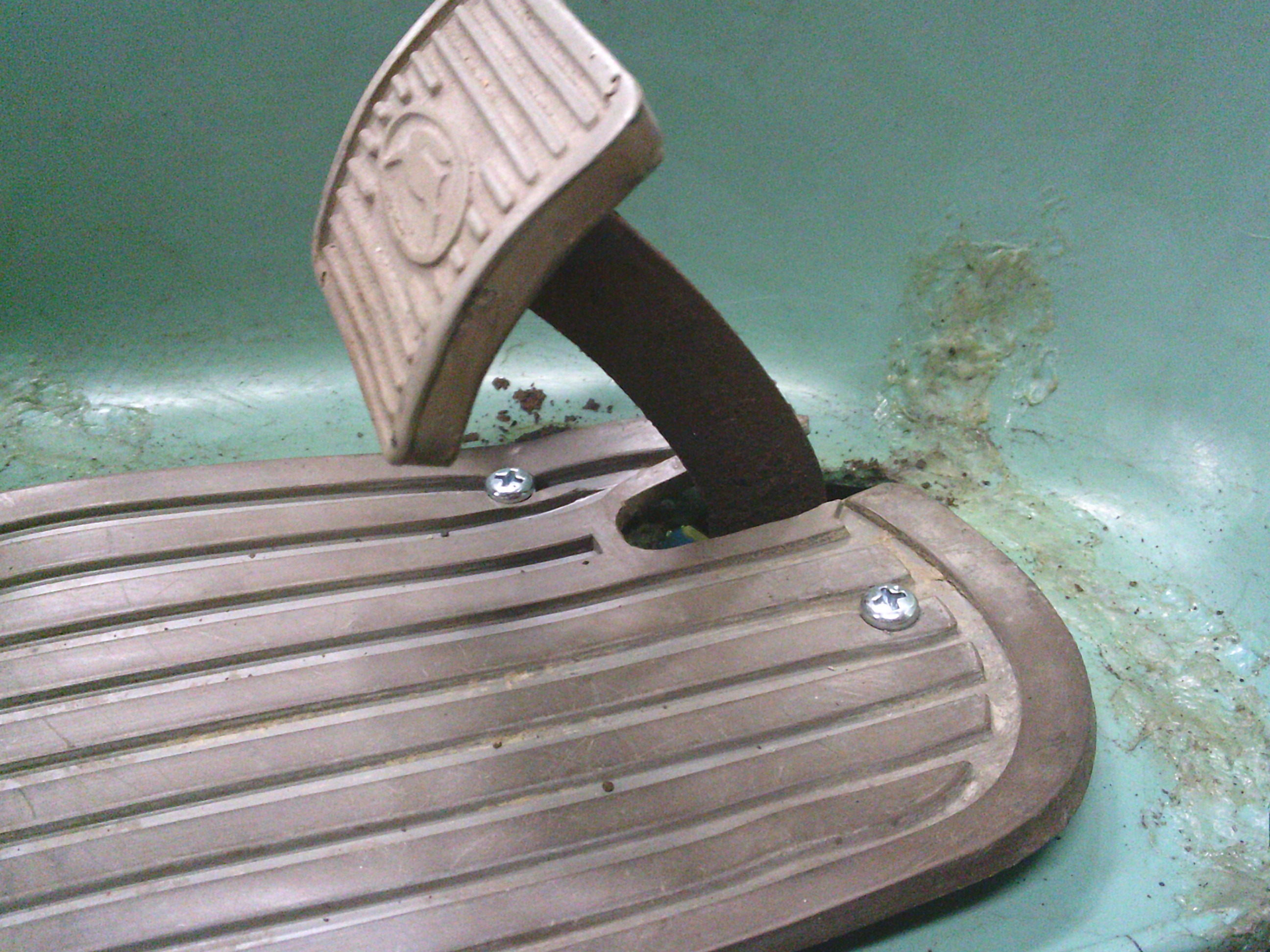 浮いたマットがブレーキペダルに干渉します。