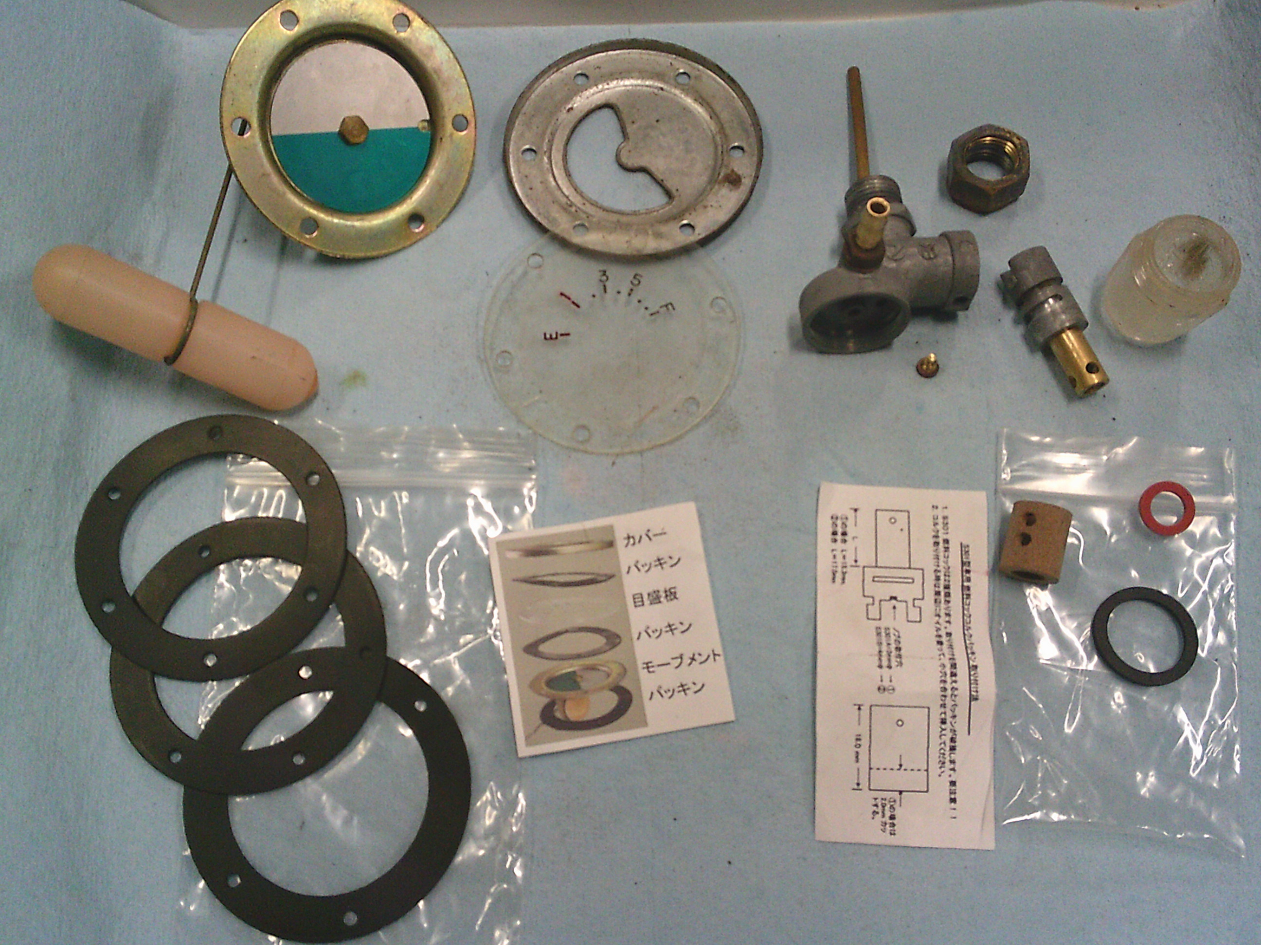 次はフューエルゲージとコックを組み付けます。