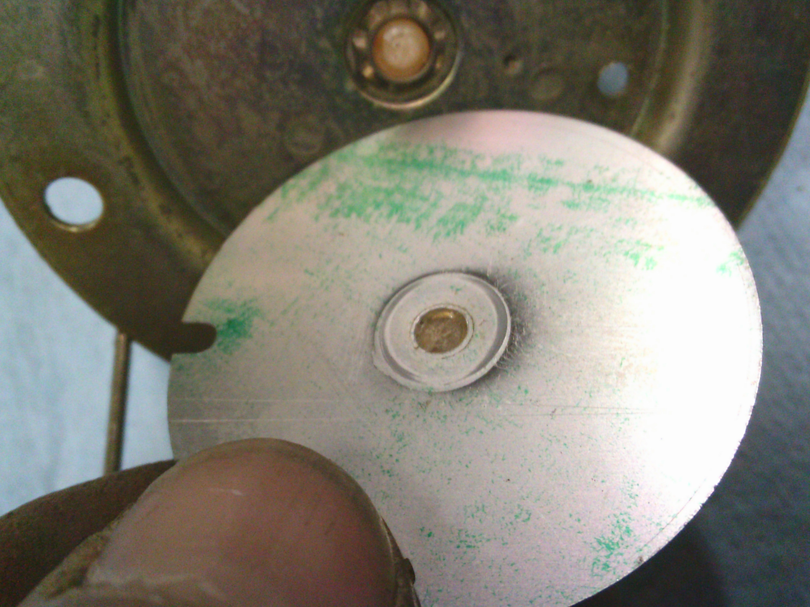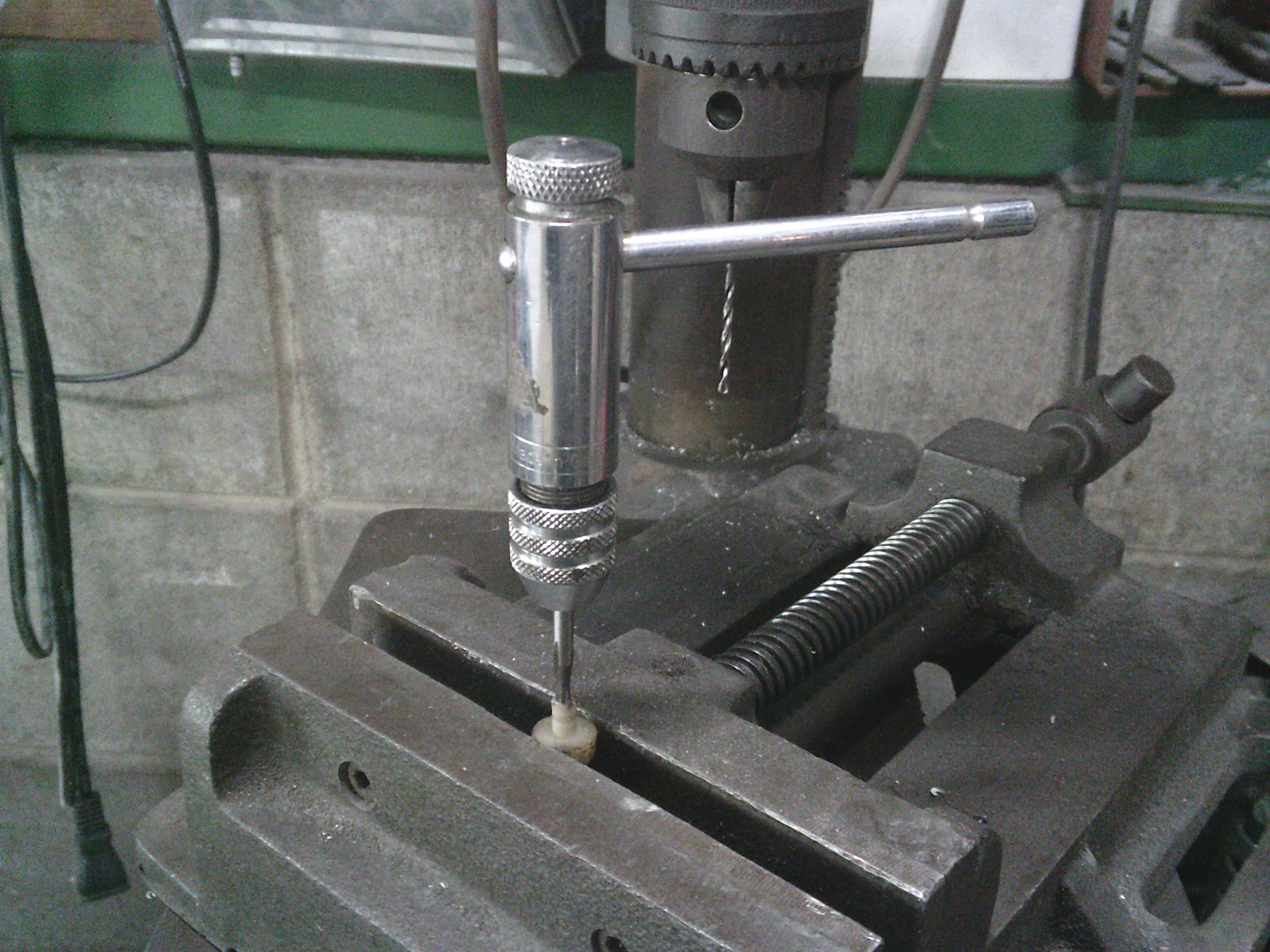 センターにボール盤で穴を開けます。
