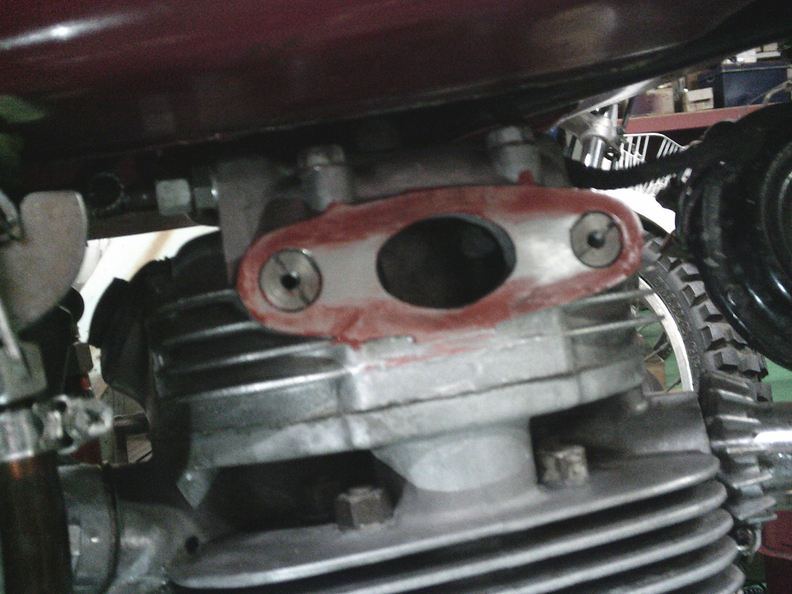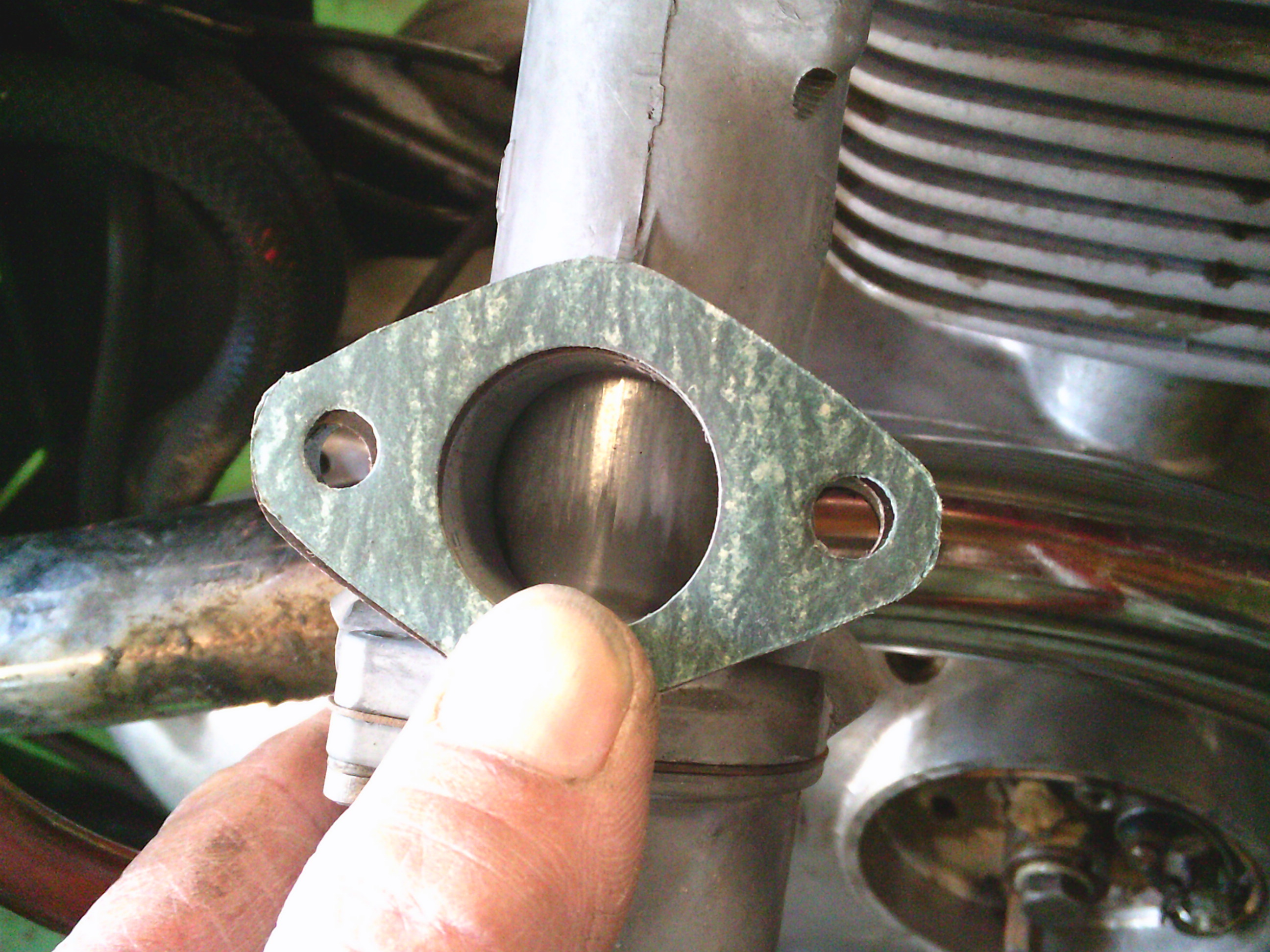 キャブとエンジンの間のベークライト板の