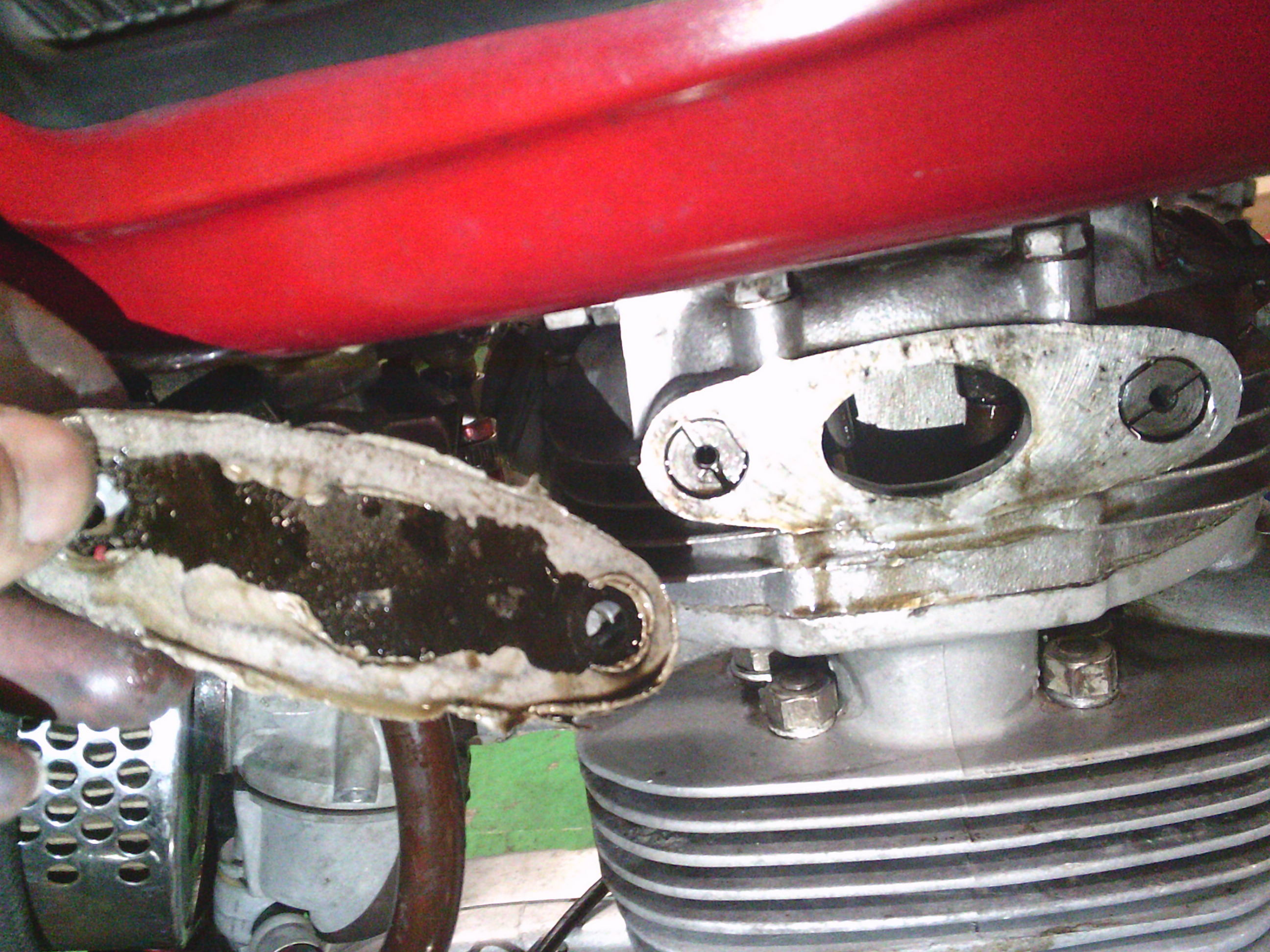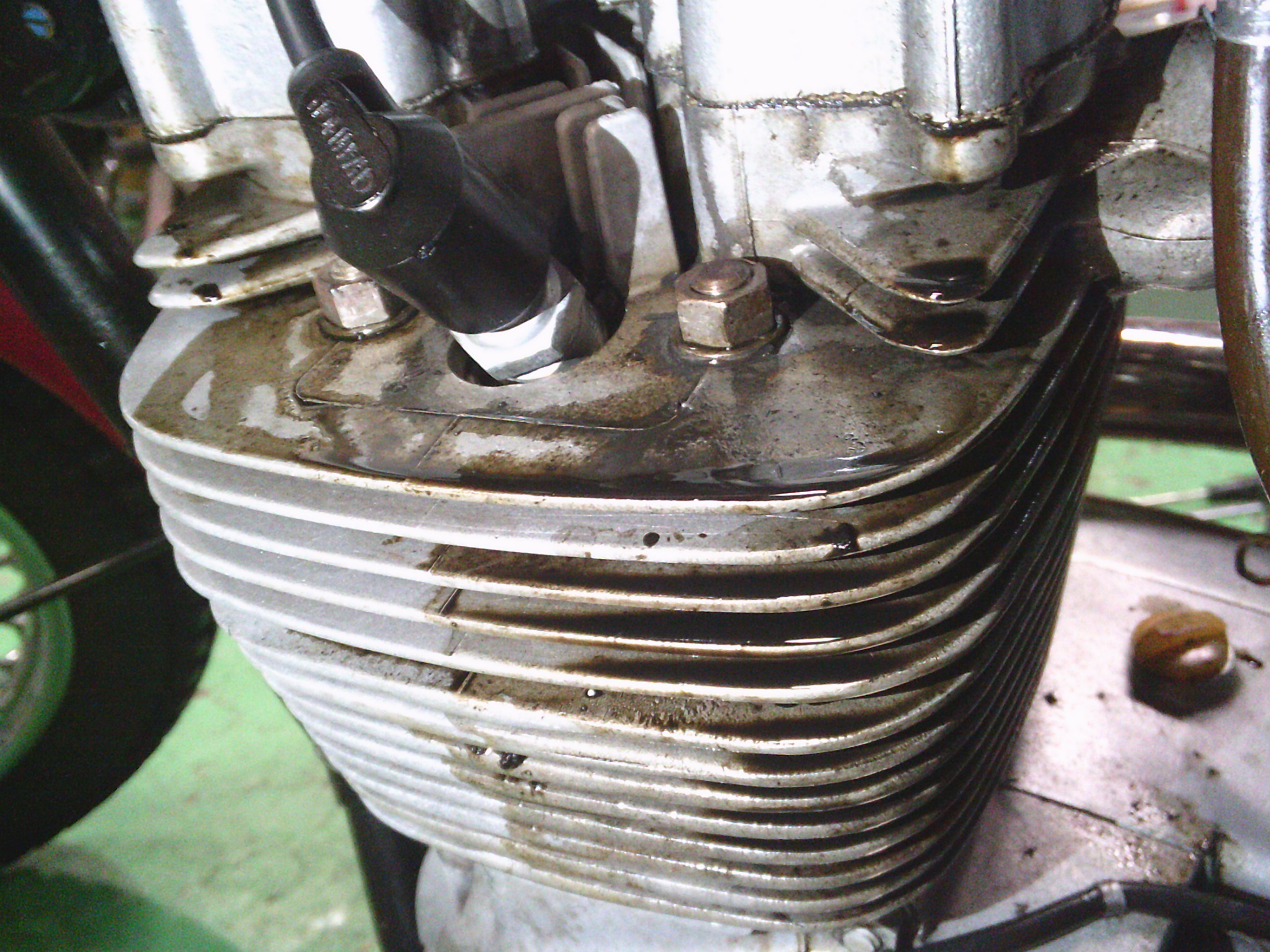 シリンダーヘッド周辺のオイル漏れを点検します。