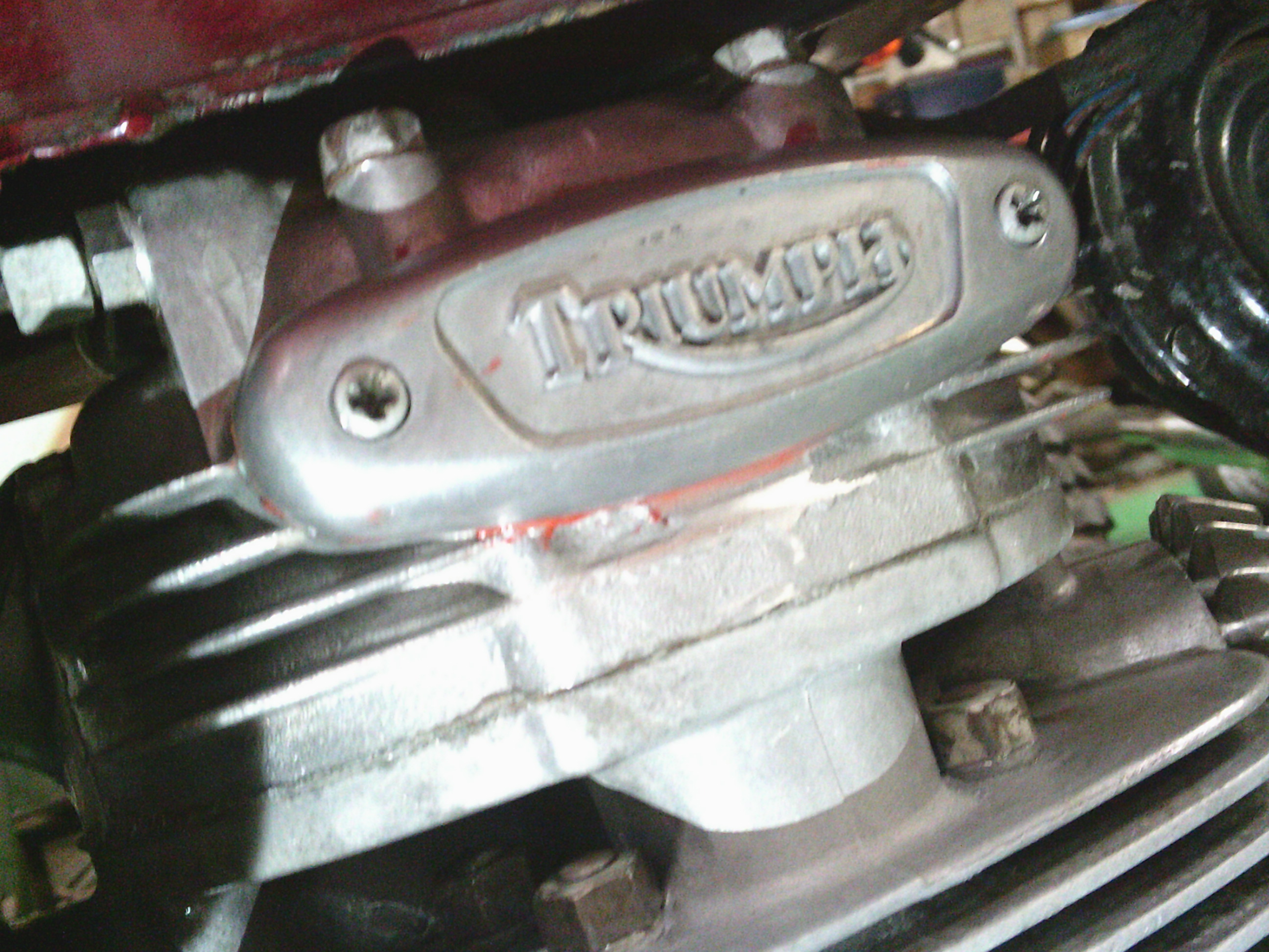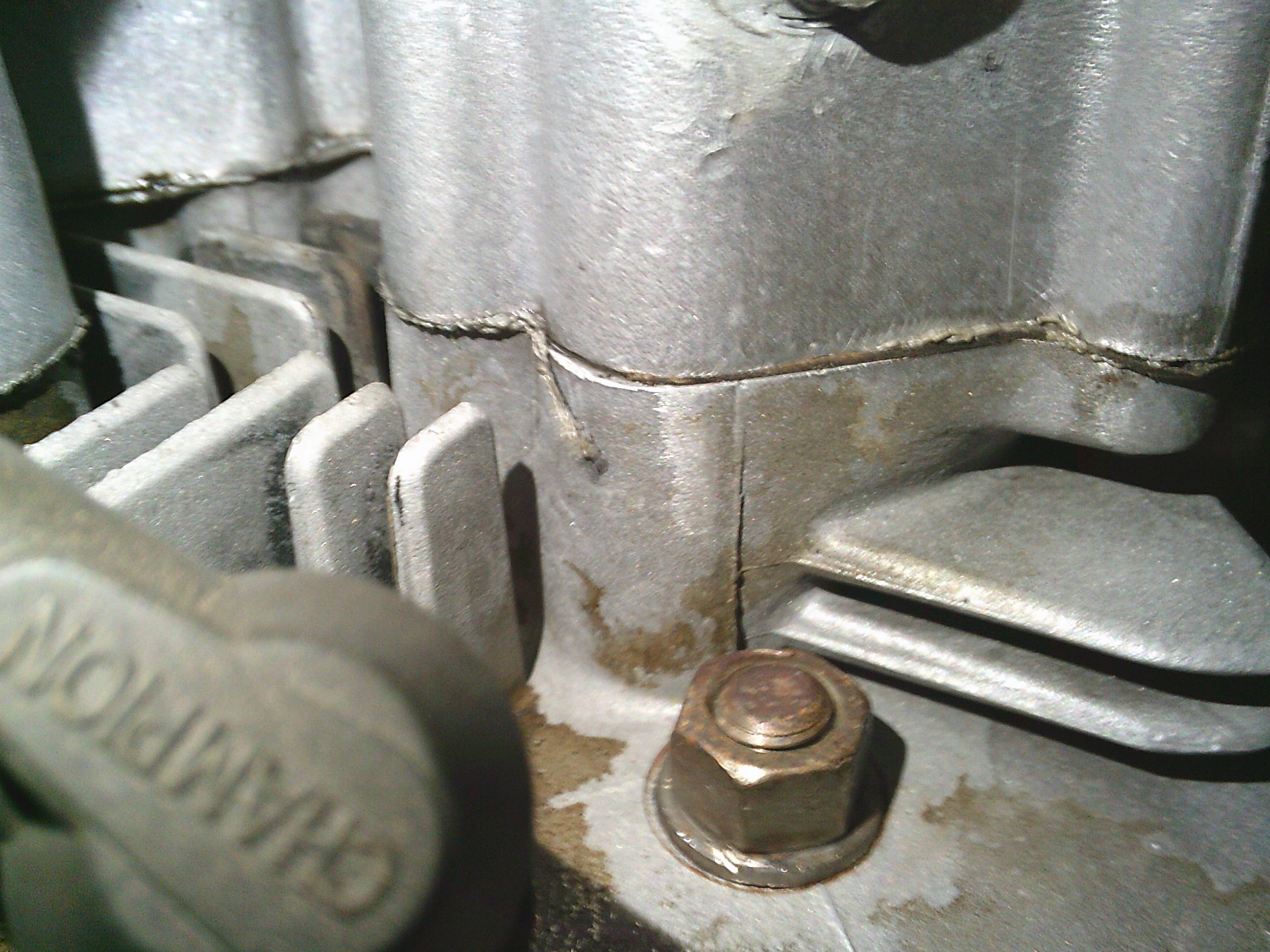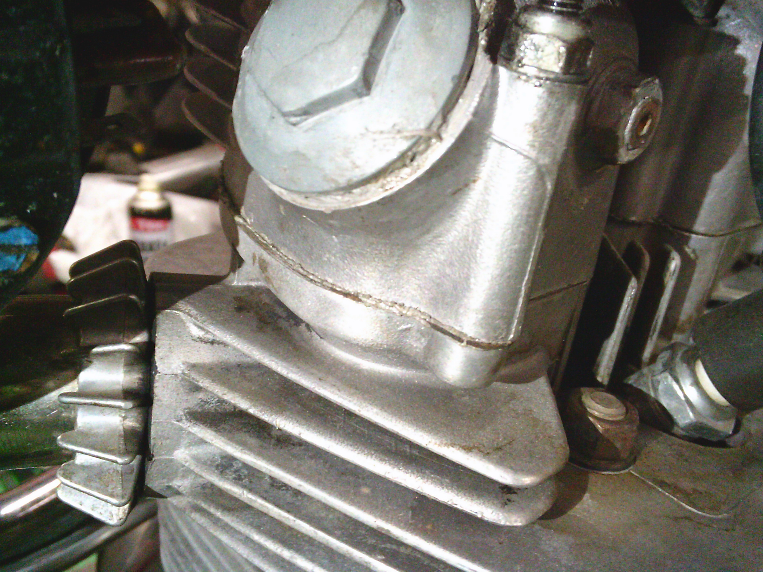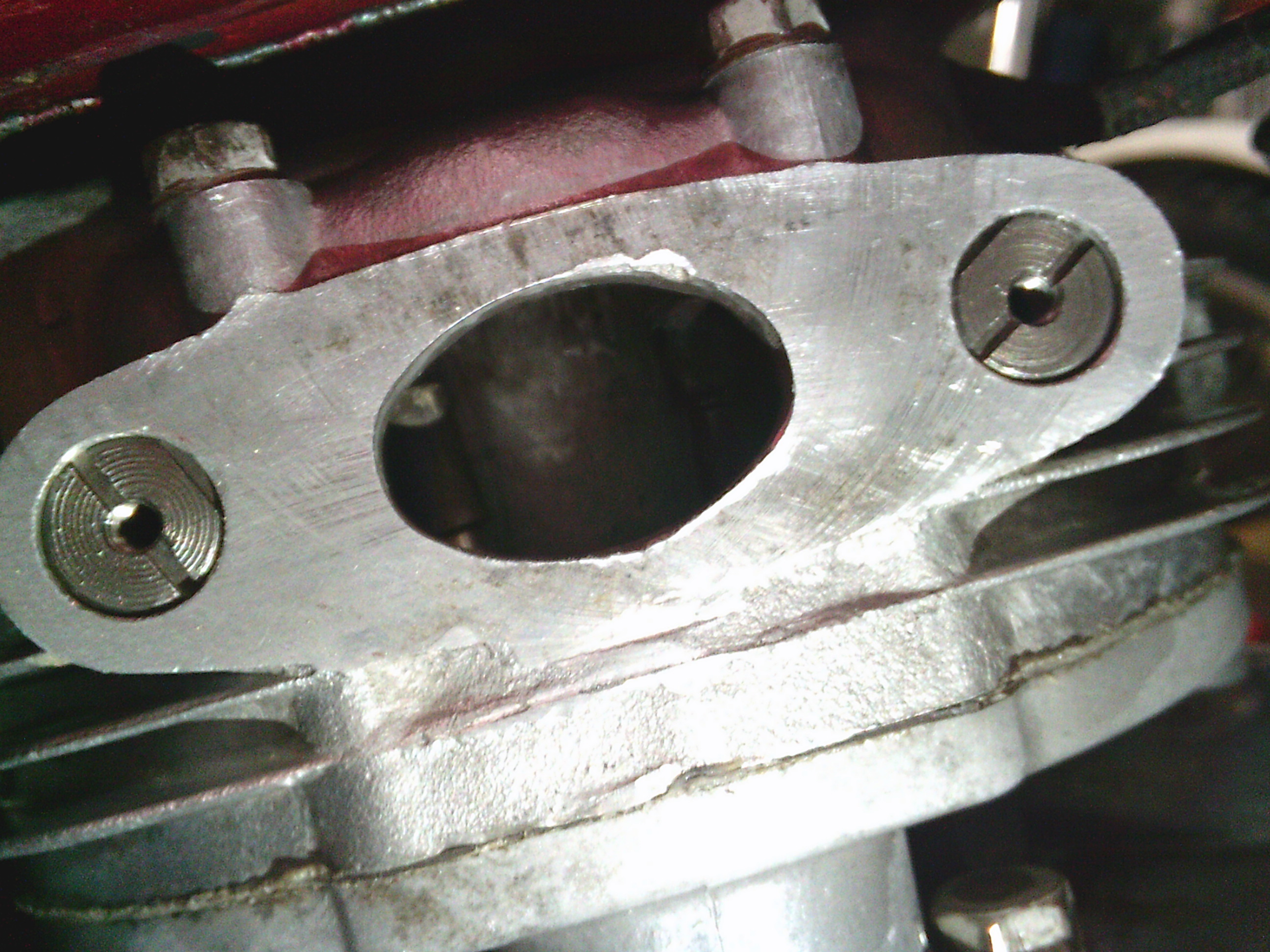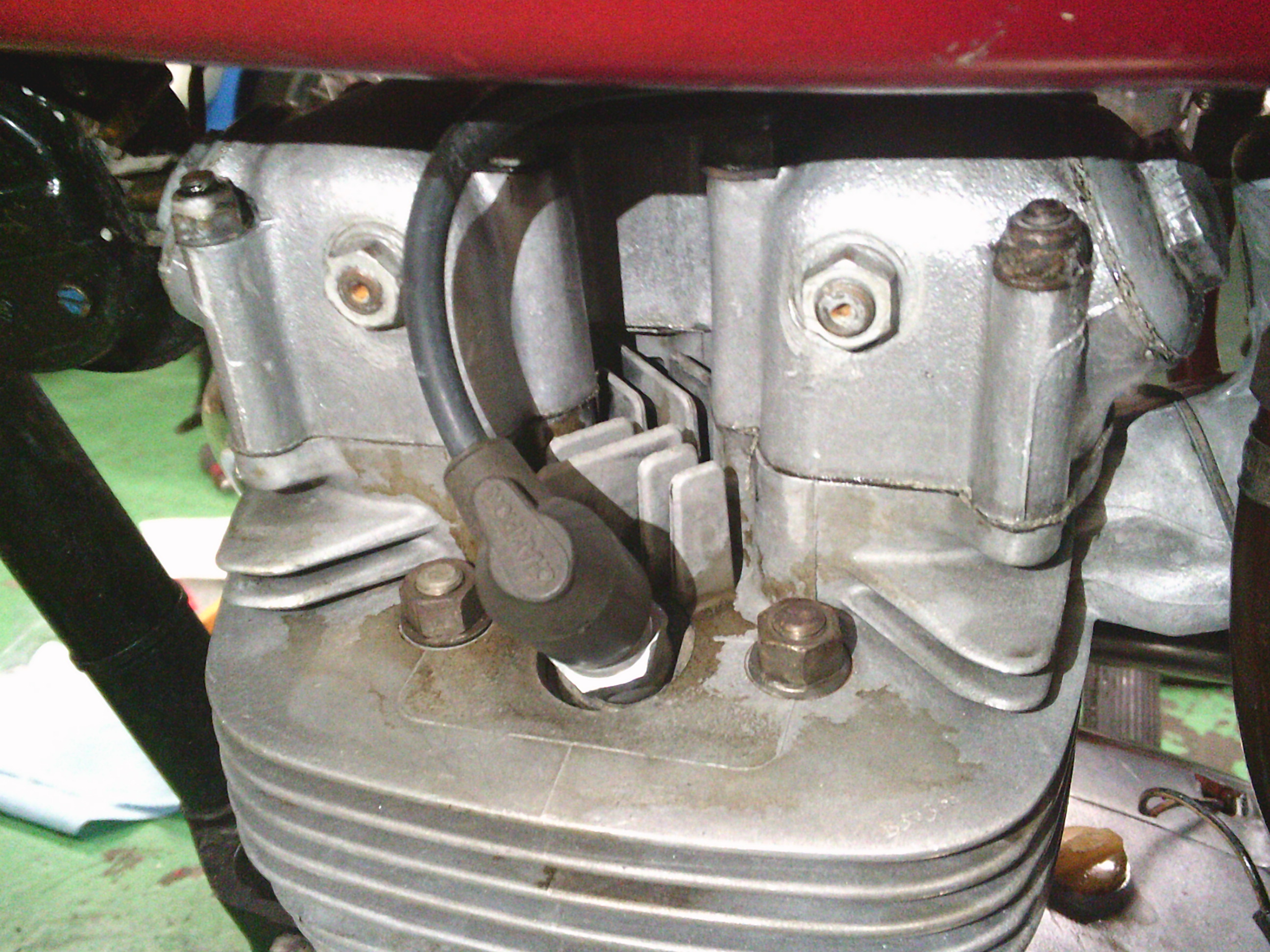 シリンダーヘッドの奥の方も少し怪しい・・・